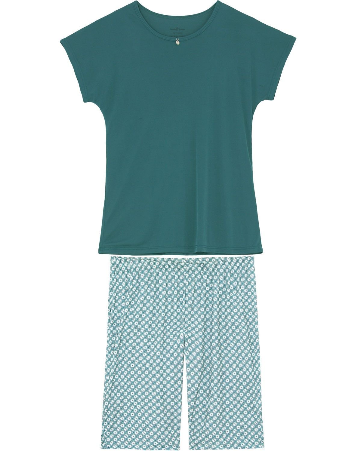 Despojado e leve, esse é com certeza é o bermudoll ideal para as noites de sono. A modelagem super atual, possui blusa lisa com detalhe de pingente e bermuda com comprimento até o joelho, seguindo a tendência geométrica. A peça confeccionada em Light Print possui toque geladinho, e um caimento leve que garante frescor ao contato com a pele. As estampas possuem mais definição e cor, além de brilho acetinado.