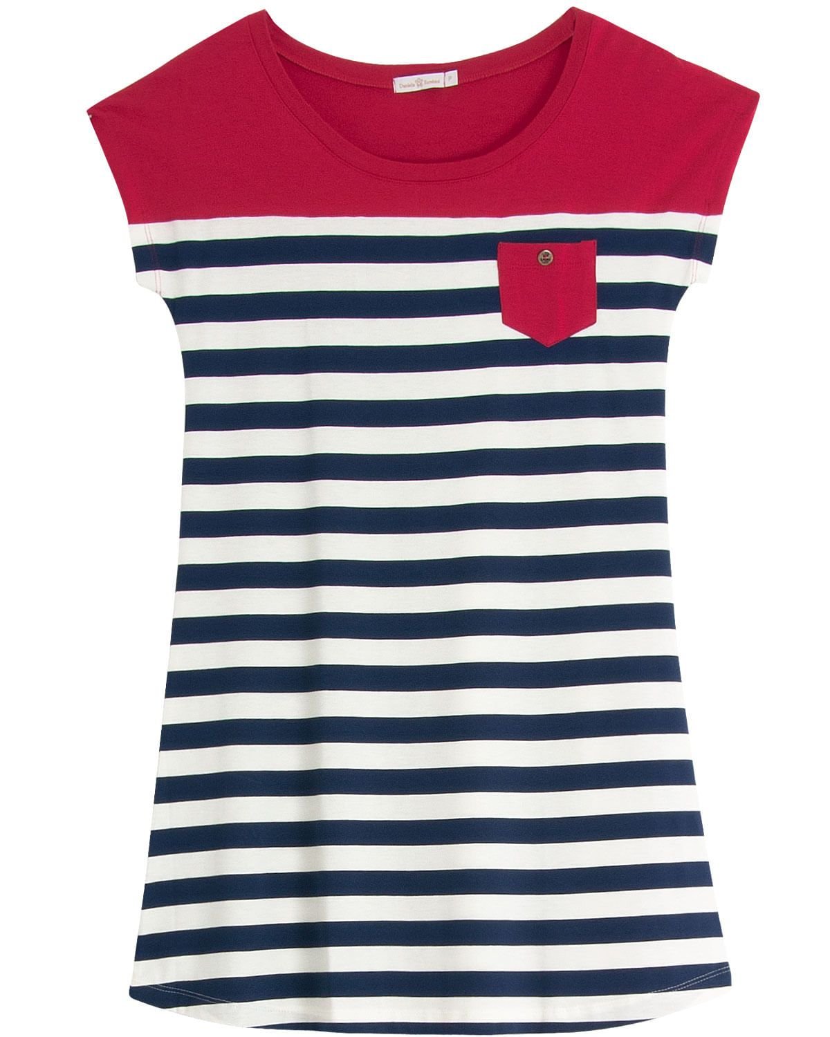 As listras, sempre clássicas e atemporais, ganham cores vibrantes e delicados detalhes de bolso com referencias Navy nessa camisola curta. Com corte minimalista e toda confeccionada em viscolycra, uma malha leve e com ótima elasticidade, é a peça perfeita para garantir conforto nas noites de temperaturas mais quentes.
