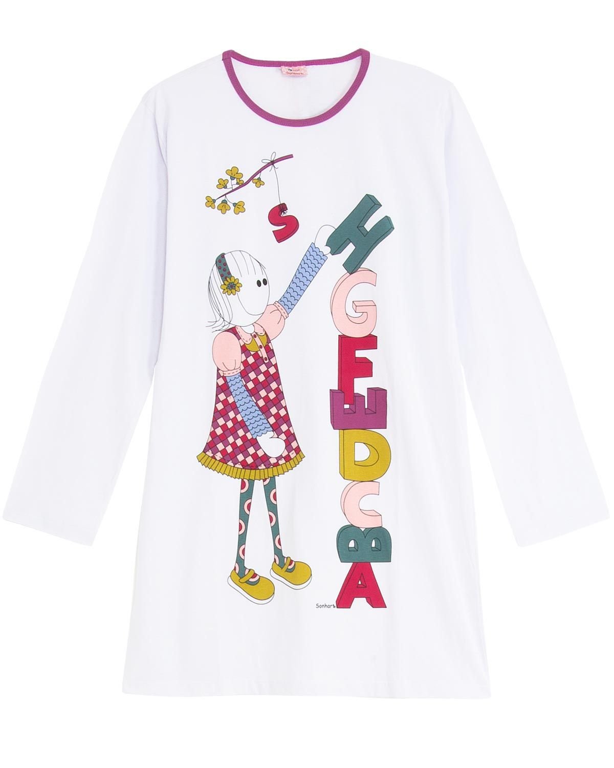 O camisão é aquela escolha simples e certa para colorir o cotidiano. Com enorme e colorida estampa, será difícil não ter noites alegres e confortáveis. Destaque para viés pink no decote.