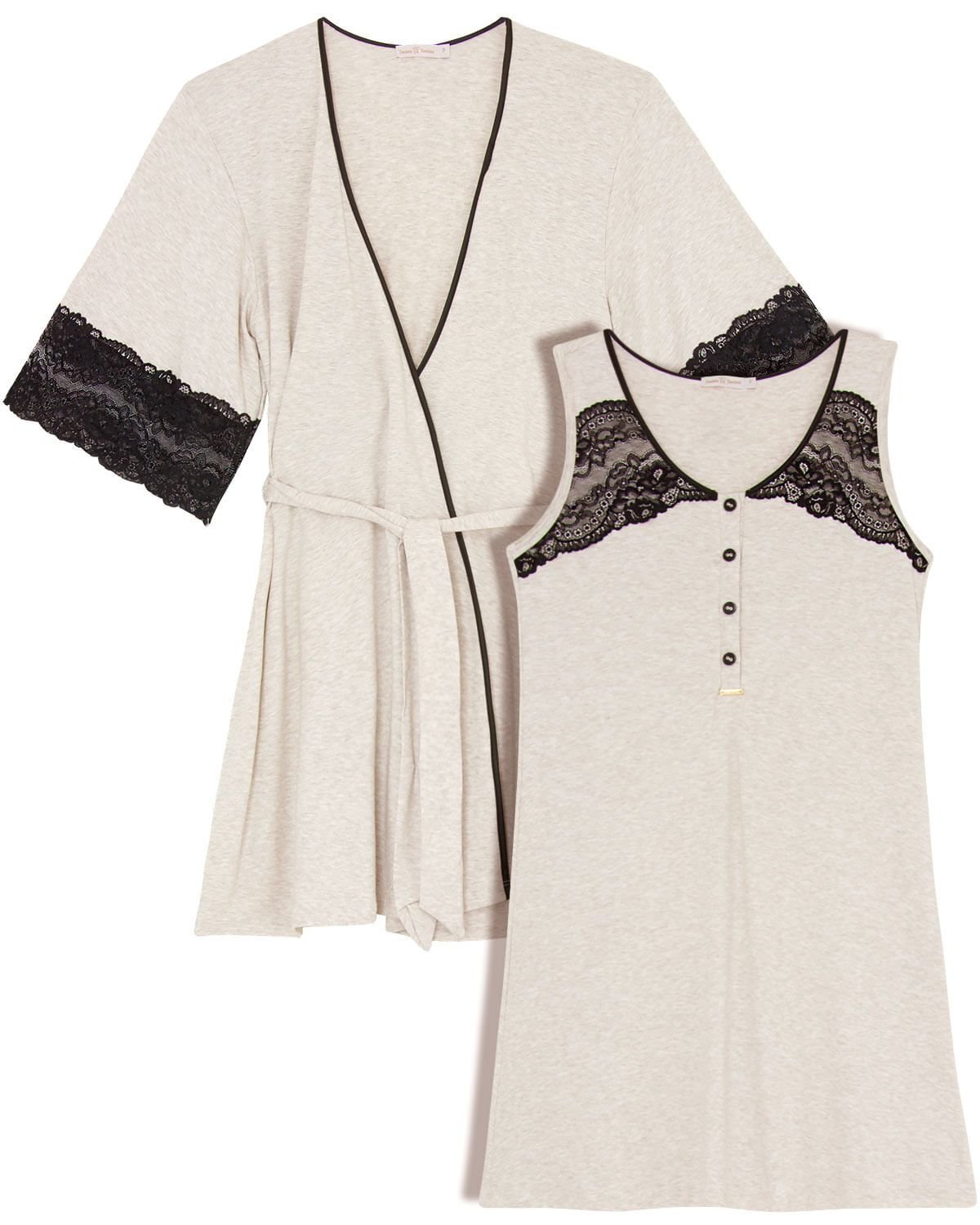A gravidez também é o período para a mulher se sentir bonita e elegante, por isso a Pijama Online trouxe esse jogo de camisola e robe que alia conforto e sofisticação. A camisola em viscolycra com abertura por botões na altura dos seios facilita a amamentação, podendo ser usada também no pós-parto. O robe também em viscolycra e com renda nas mangas, confere a elegância e praticidade que a mulher precisa. Ótima opção para a mala da maternidade.