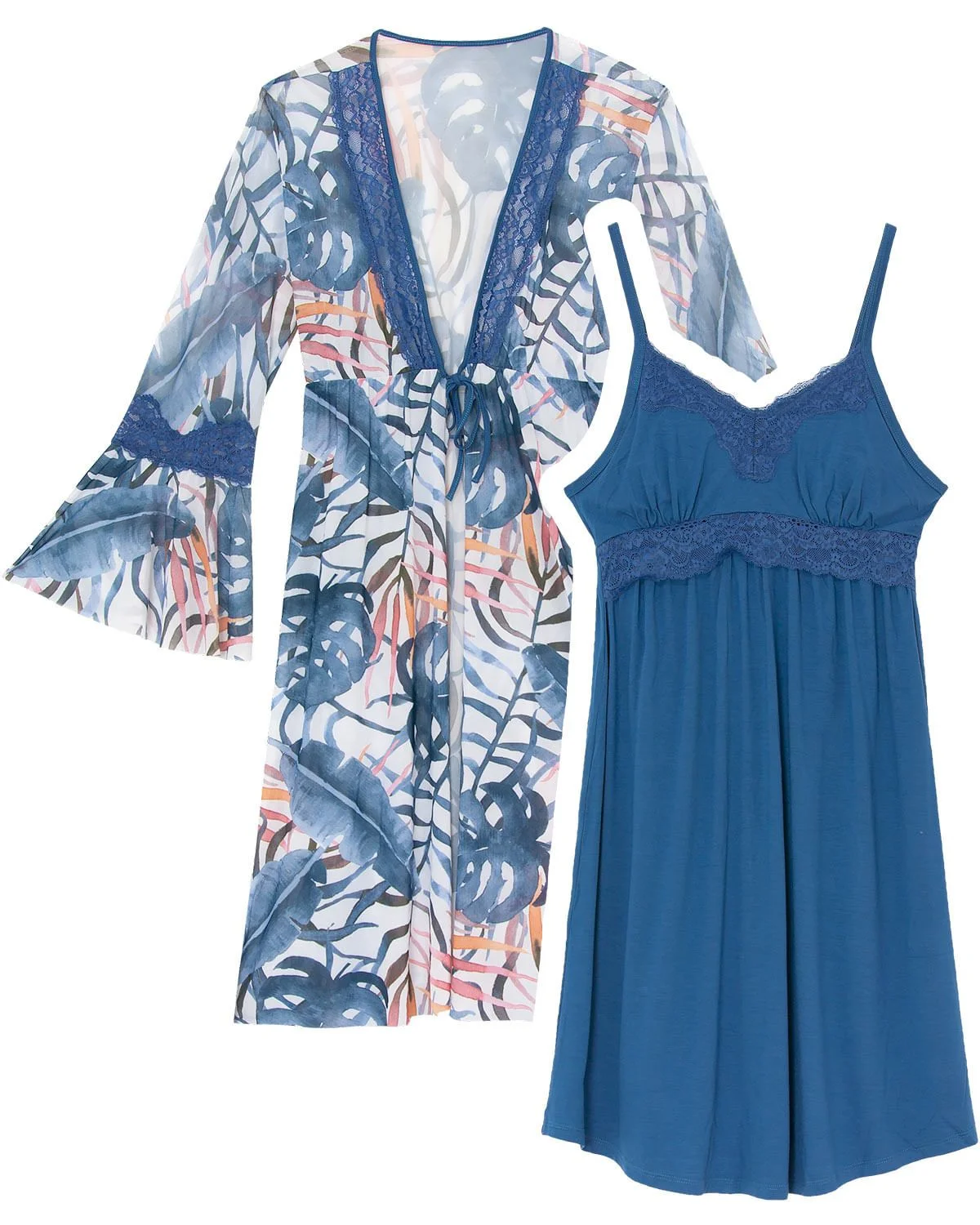 Existem fases na vida da mulher que pedem a sofisticação e versatilidade desse jogo composto por robe e camisola em viscose stretch e renda. As peças podem ser usadas inclusive no período de gravidez. Elas encantam devido à delicadeza do robe estampado e sofisticação das rendas da camisola, tendência que voltou que esta com tudo na moda e valoriza a beleza feminina.