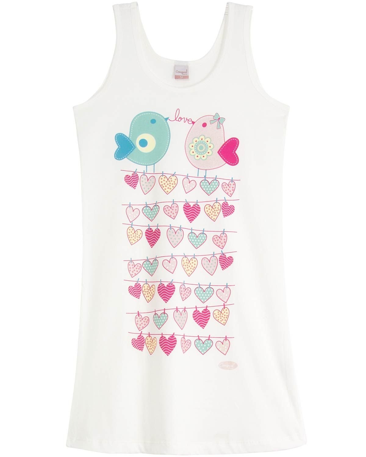 Camisolas são itens essenciais no guarda roupa de uma mulher, pois são peças femininas, práticas e confortáveis como nenhuma outra. Esse modelo, com camiseta regata, possui estampa fofa e meiga de passarinhos e corações, garantindo a delicadeza e o charme essencial para uma noite de sono tranquila, agradável e de sonhos incríveis. A malha 100% algodão de excelente qualidade é ideal para os dias quentes de verão, pois proporciona leveza e assim, qualidade do sono.