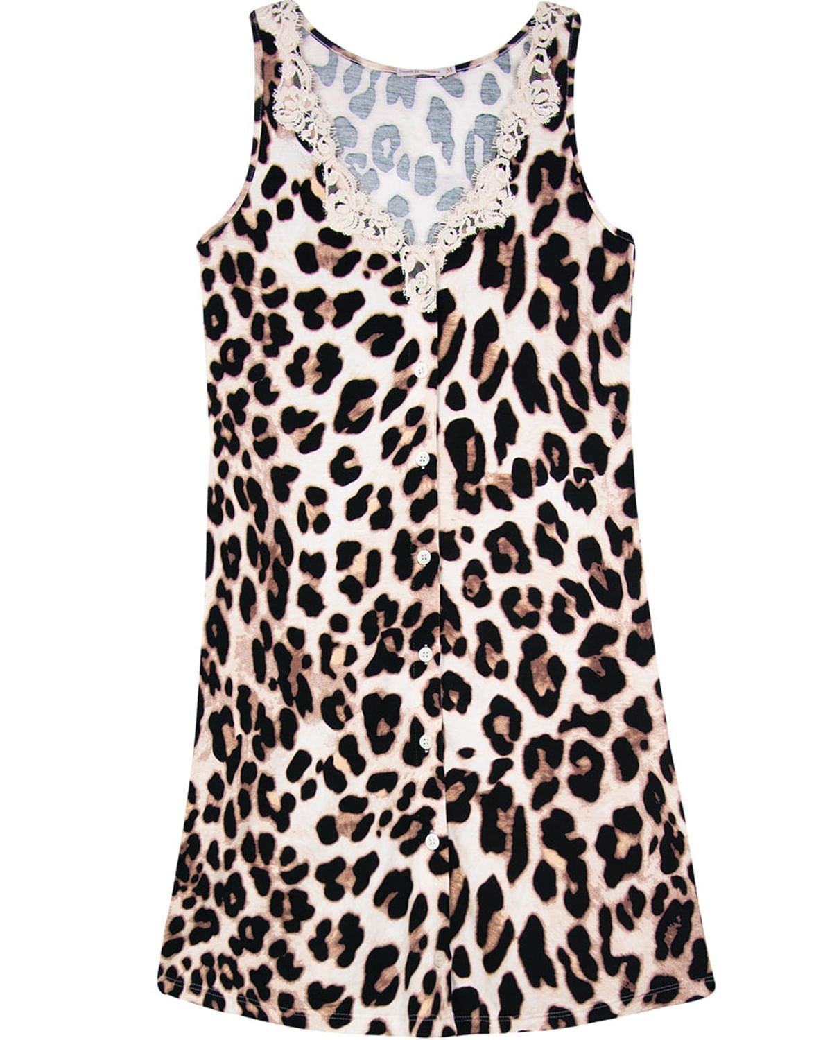 A modernidade também deve estar presente na hora de dormir. Para isso, esta camisola feita em viscose super macia, vem trazendo o animal print que nunca sai de moda, contrapondo com a modelagem mais clássica e abertura com botões, que também podem facilitar num pós operatório, ou mesmo na amamentação. Destaque para aplicação de renda no busto, trazendo ainda mais feminilidade para suas noites.
