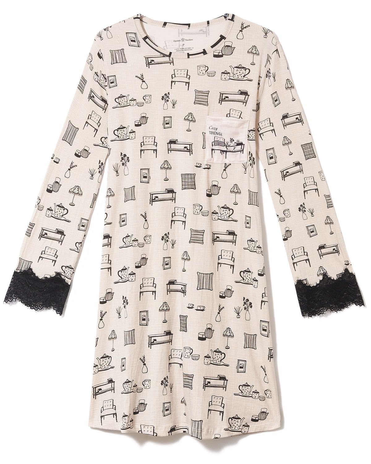 Esta camisola traz estampa exclusiva, bolso com toque macio localizado com a escrita "Cozy Things" que traduzida é "Coisas Aconchegantes" e detalhes de renda nos punhos. Confeccionado em Viscolycra texturizada, imitando linho, tecido que oferece liberdade de movimentos, ótima respirabilidade e um ótimo caimento.