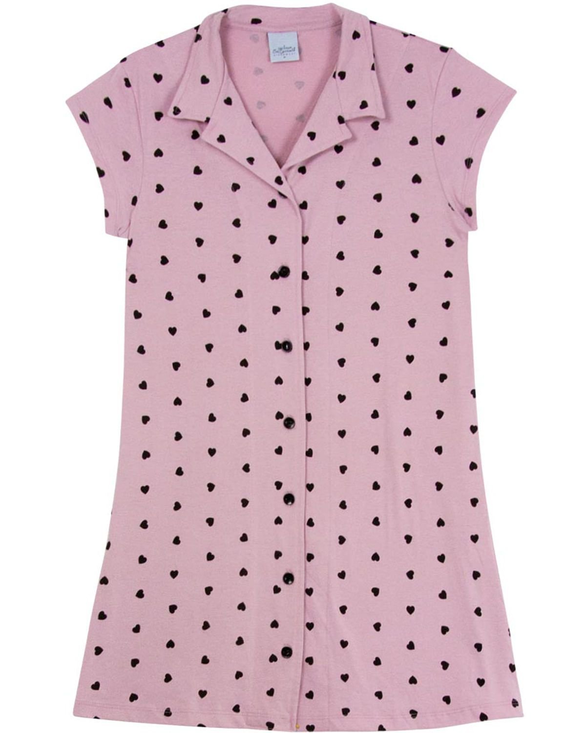 O estilo também deve estar presente na hora de dormir e acordar. Para isso, pequenos corações estampam todo este camisão manga curta, feito em 100% algodão. Com modelagem clássica com gola e abertura com botões, torna-se ideal para pós-cirurgia ou para amamentação.