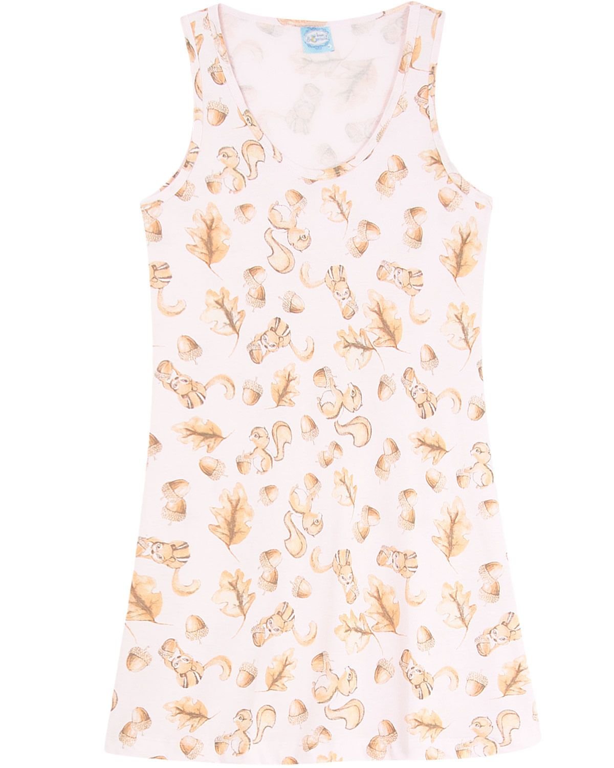 Camisola é sempre aquele aconchego necessário. Uma escolha simples e certa para colorir o cotidiano e garantir o conforto em noites tranquilas. Este modelo regata com corte tradicional ganha mais vida com estampa de esquilos, dando o toque feminino e gracioso a peça de verão.