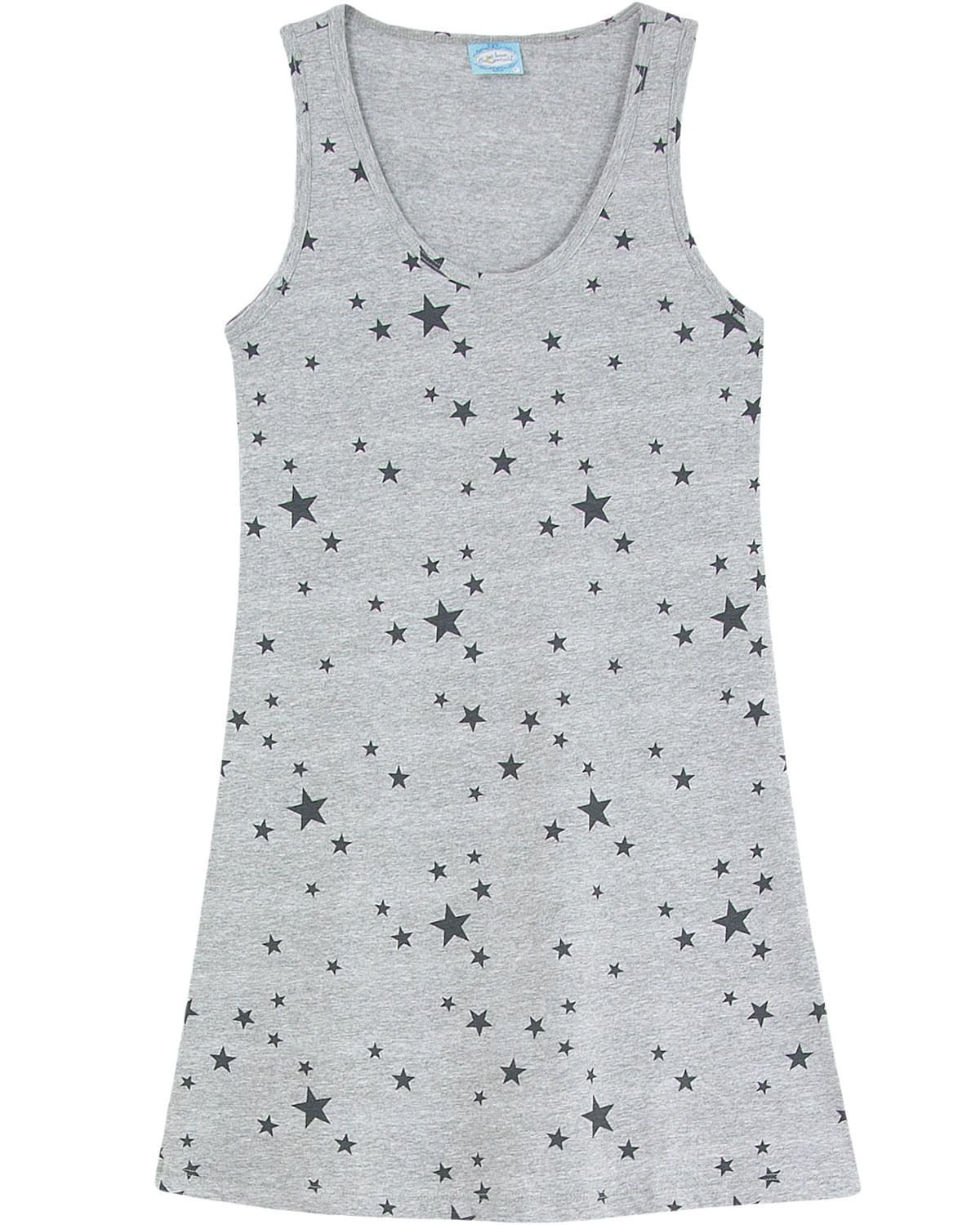 Camisola é sempre aquele aconchego necessário. Uma escolha simples e certa para colorir o cotidiano e garantir o conforto em noites tranquilas. Este modelo regata com corte tradicional ganha mais vida com estampa de estrelas, dando o toque feminino e gracioso a peça de verão.