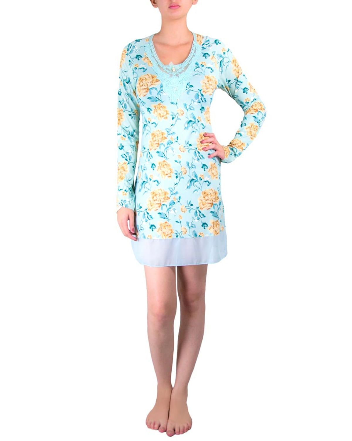 A camisola é super adequada para noites confortáveis e de temperaturas mais frias. A modelagem com estampa floral dá o toque feminino e delicado a peça. Destaque para detalhe em renda no decote, e tule na barra.