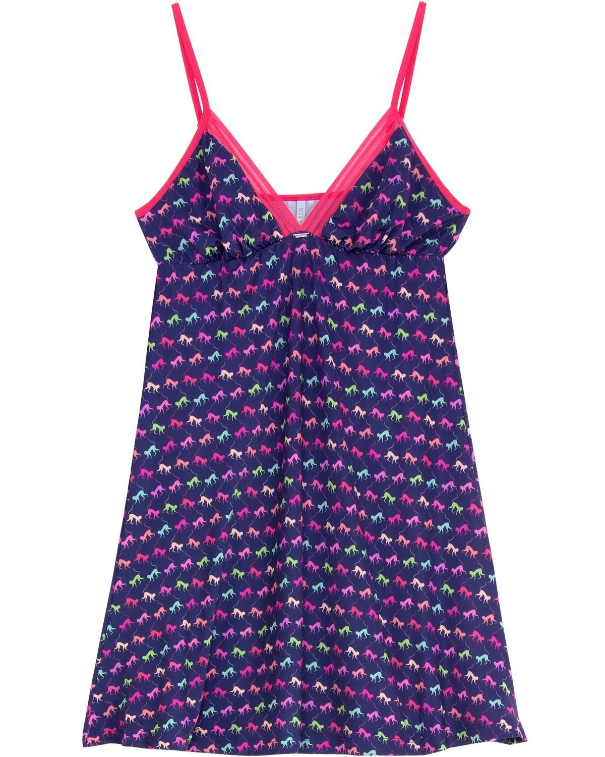 A camisola é um item prático, confortável e que precisa fazer parte do guarda-roupa de toda mulher. Esse modelo de alça é confeccionado em microfibra, uma malha fria de excelente qualidade, que proporciona o máximo de conforto por ser leve e super fresquinha. A beleza da peça fica por conta da estampa de macaquinhos coloridos e dos detalhes em tule no busto.