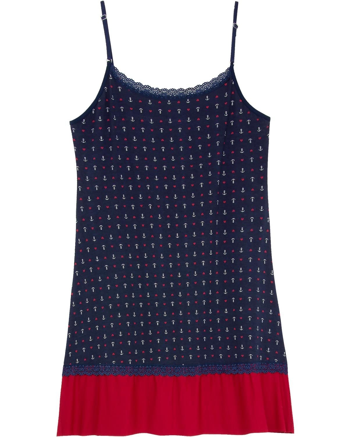 A camisola além de ser uma peça super versátil e confortável, é aquele item que não pode faltar no guarda-roupa feminino. Esse modelo plus size de alça é confeccionado por um mix de malha de excelente qualidade, proporcioando um leve e perfeito caimento ao corpo. O look fica ainda mais moderno e bonito com essa estampa de âncora com corações. A peça também conta com renda no decote e no barrado, de ótima qualidade, pois não incomoda. Ideal para mulheres modernas.