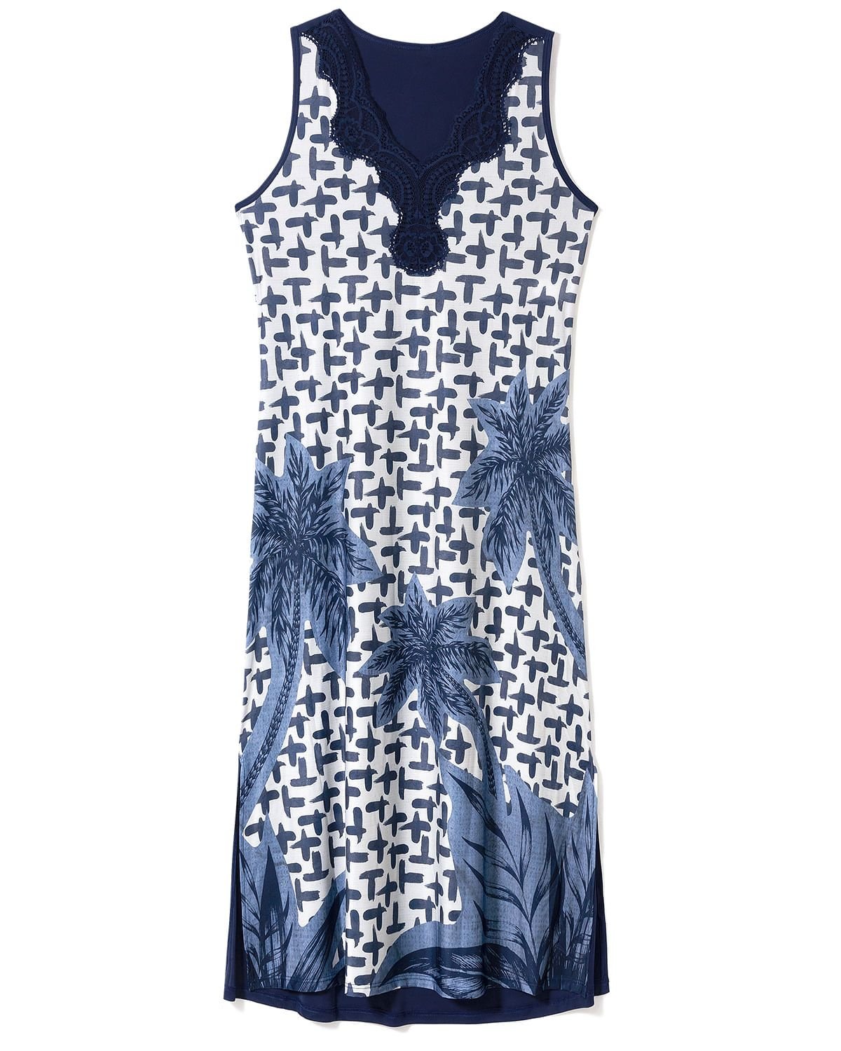 As camisolas midi têm ganhado espaço no guarda-roupa feminino, pois além de sua elegância, oferecem conforto devido ao seu comprimento. Este modelo regata apresenta uma estampa exclusiva, fendas nas laterais e renda no decote. É confeccionado em Supermicro Amni®, tecido composto por fios inteligentes que facilitam a nossa vida. Além da fácil manutenção da peça, ele permite que o tecido se adapte facilmente às temperaturas. É ideal para levar em viagens, pois ocupa pouco espaço na mala, não amassa e seca rapidamente. Assim, você pode usar e abusar desta peça tão prática.