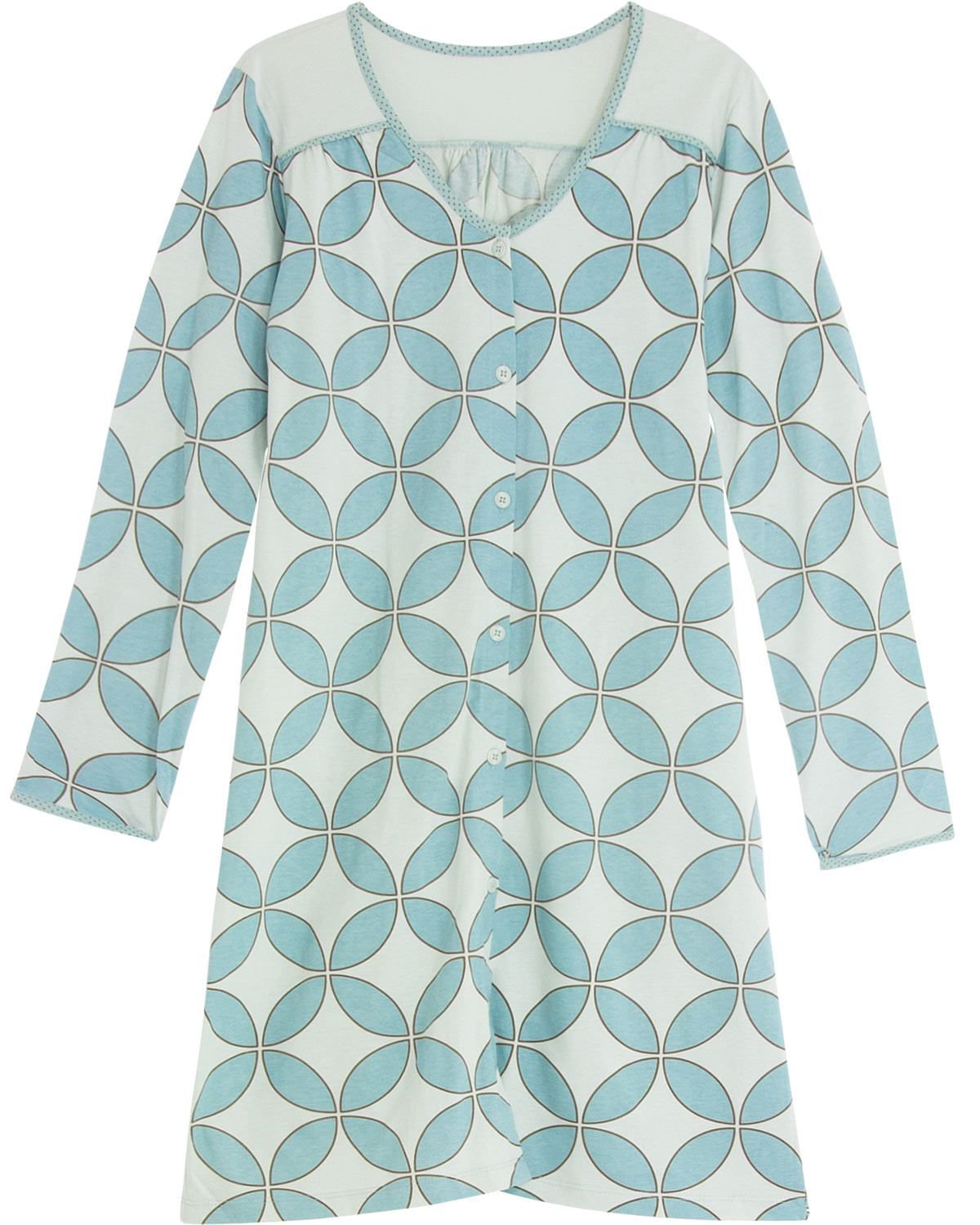 A camisola aberta é aquela escolha simples e certa para colorir suas noites de sono.Feita em macia malha e com estampa floral por toda a peça, será difícil não ter noites agradaveis e confortáveis. Com botões frontais, torna-se ideal para atender as necessiadades pós cirurgicas e de amamentação. Destaque para viés em poá no decote.