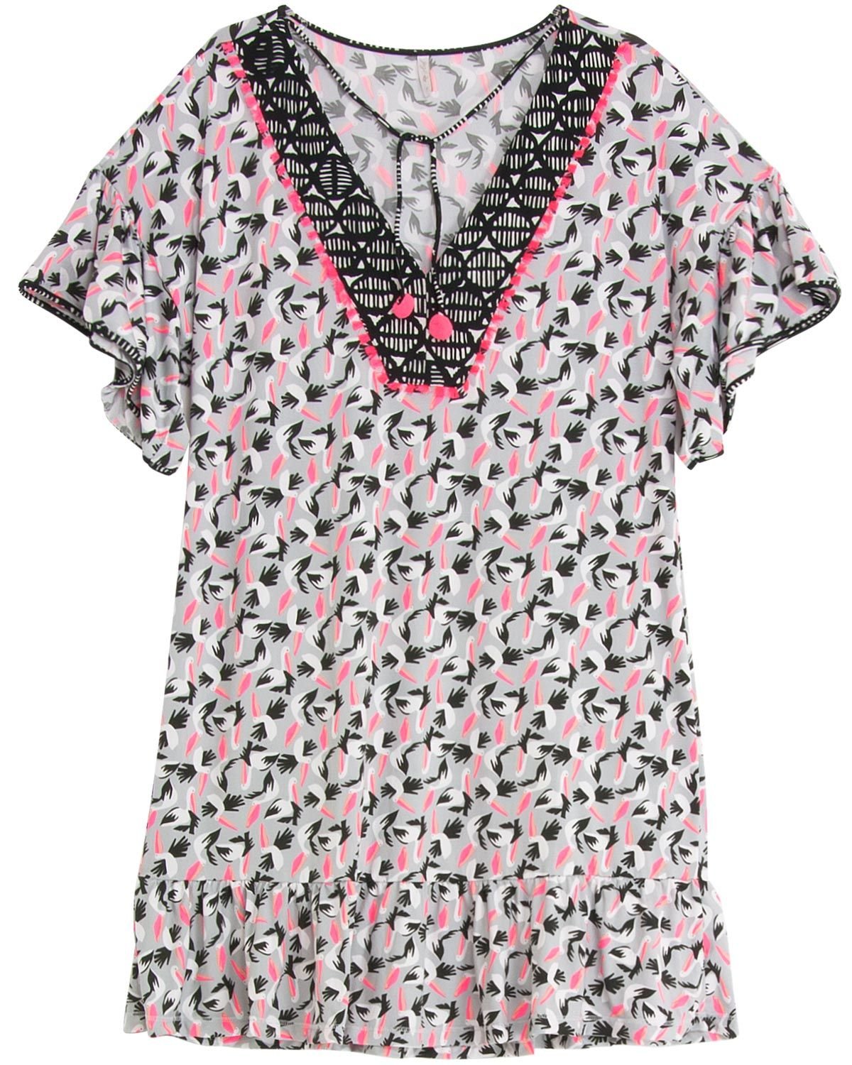 Toda mulher precisa ter aquela kaftan fino e elegante para noites agradáveis e especiais. Esse modelo com estampa fina de pelicano e detalhe na gola, garante charme e atitude. A malha fria de excelente qualidade proporciona um visual sofisticado e um toque leve na pele. Ideal para qualquer época do ano.