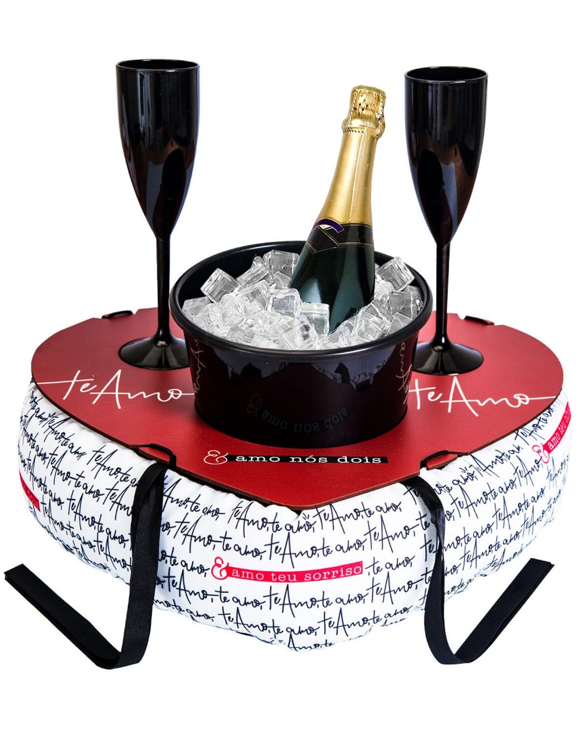 Um presente romântico e criativo para criar momentos maravilhosos com quem você ama. Almofada com balde e 2 taças para os casais mais apaixonados usufruírem de um momento único.