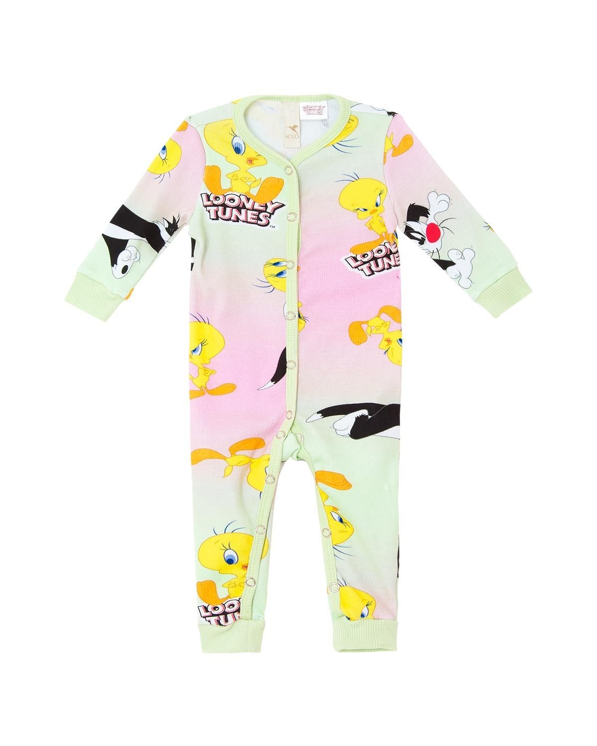 A fofura foi liberada neste macaquinho que traz o Frajola e o Piu-Piu em uma estampa exclusiva em parceria com a Warner Bros e Looney Tunes. Confeccionado todo em ribana canelada de algodão, a peça é puro conforto aos pequenos. Seu abotoamento frontal e entre as pernas, facilitam muito na hora de vestir.