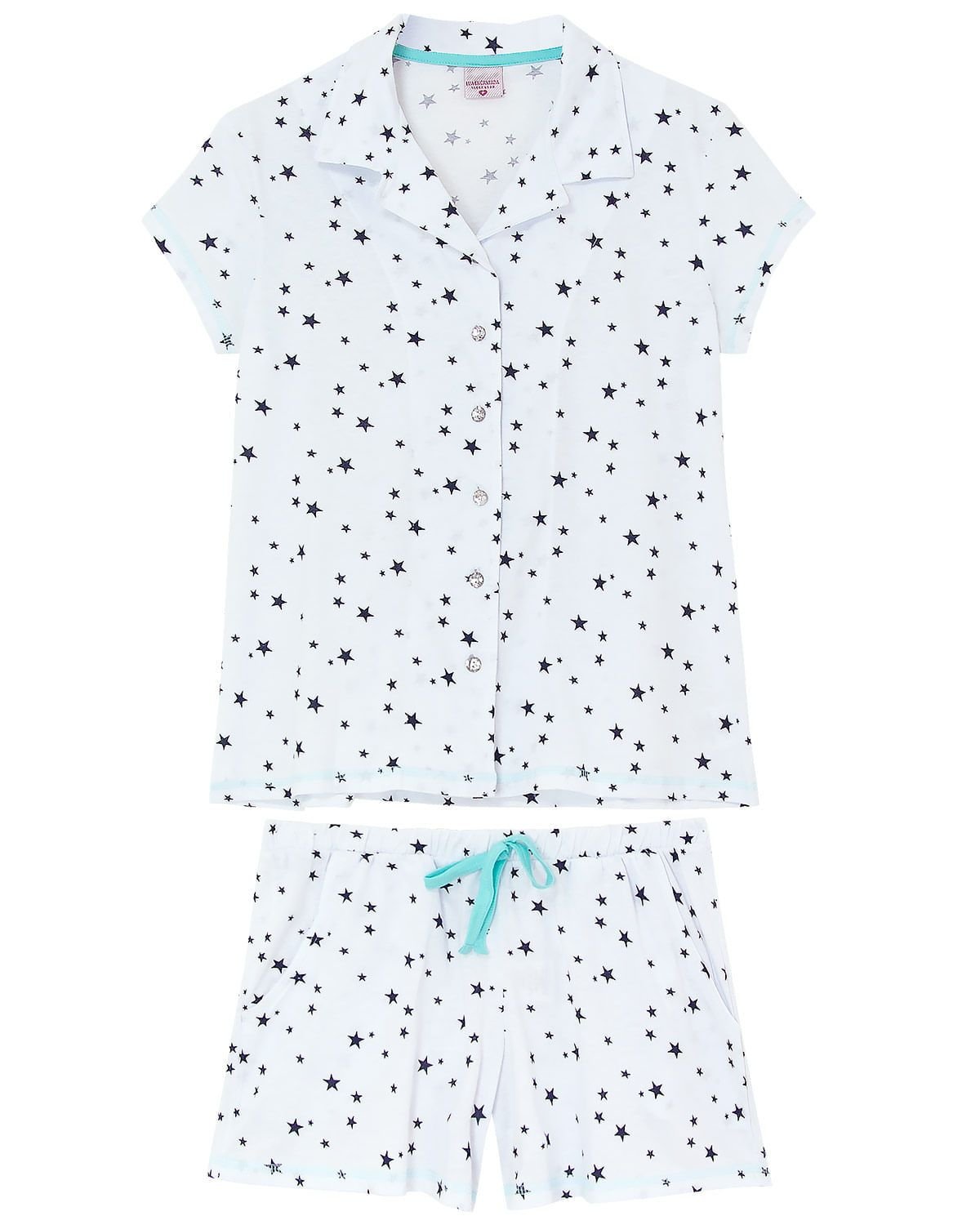 Prático, confortável e clássico, esse pijama é a peça essencial no guarda-roupa de uma mulher. O conjunto com blusa de manga curta e abertura frontal com botões, é confeccionada em algodão de excelente qualidade, uma malha leve e macia. A beleza do conjunto fica por conta da linda estampa de estrelas, proporcionando um visual mais delicado e encantador. Indicado também para as futuras mamães, pois oferece muita praticidade ao amamentar!