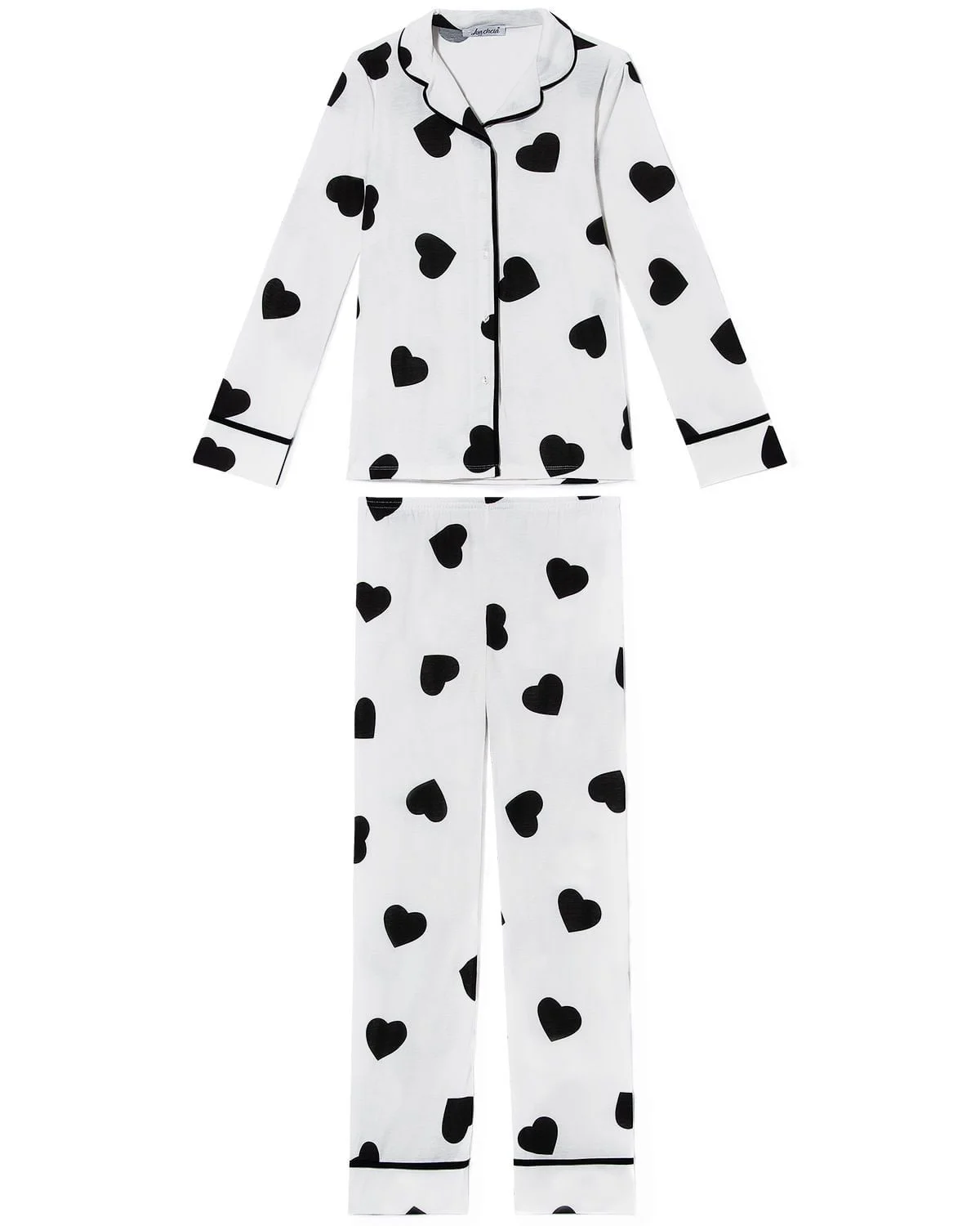 Que o seu coração transborde de felicidade! Confeccionado em tecido de excelente qualidade, garantindo toque macio e ótimo caimento. Este pijama americano é composto por blusa com abertura por botões e calça com cós de elástico, permitindo o ajuste perfeito ao corpo. Ideal para as noites de temperaturas amenas.