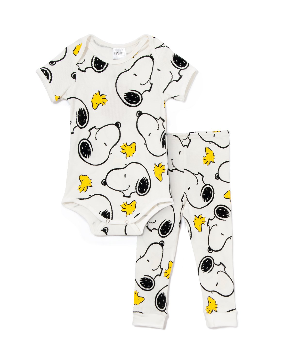 Além da estampa ecantadora do Snoopy com seu amigo Woodstock, este body possui ombros transpassados com cava americana e fechos na parte inferior. Já a calça conta com cós e punhos em elástico de alta qualidade, que oferecem conforto sem apertar ou incomodar o bebê.