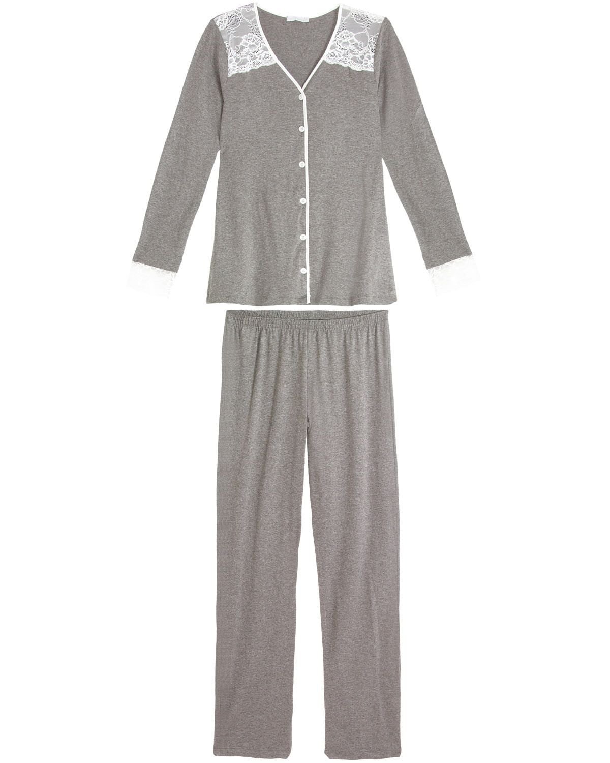 Nada melhor do que chegar em casa depois de um dia longo e cansativo e colocar aquele pijama confortável e acolhedor, e melhor ainda se ele vier com o bônus de ser lindo e elegante. Esse modeloclássico possui camiseta de manga comprida com fino acabamento em renda e botões frontais para maior praticidade e comodidade. A calça é lisa e assim como a camiseta, feita de viscose de excelente qualidade, que proporciona um toque leve na pele. Excelente opção para atender as necessidades pós cirurgica e amamentação.