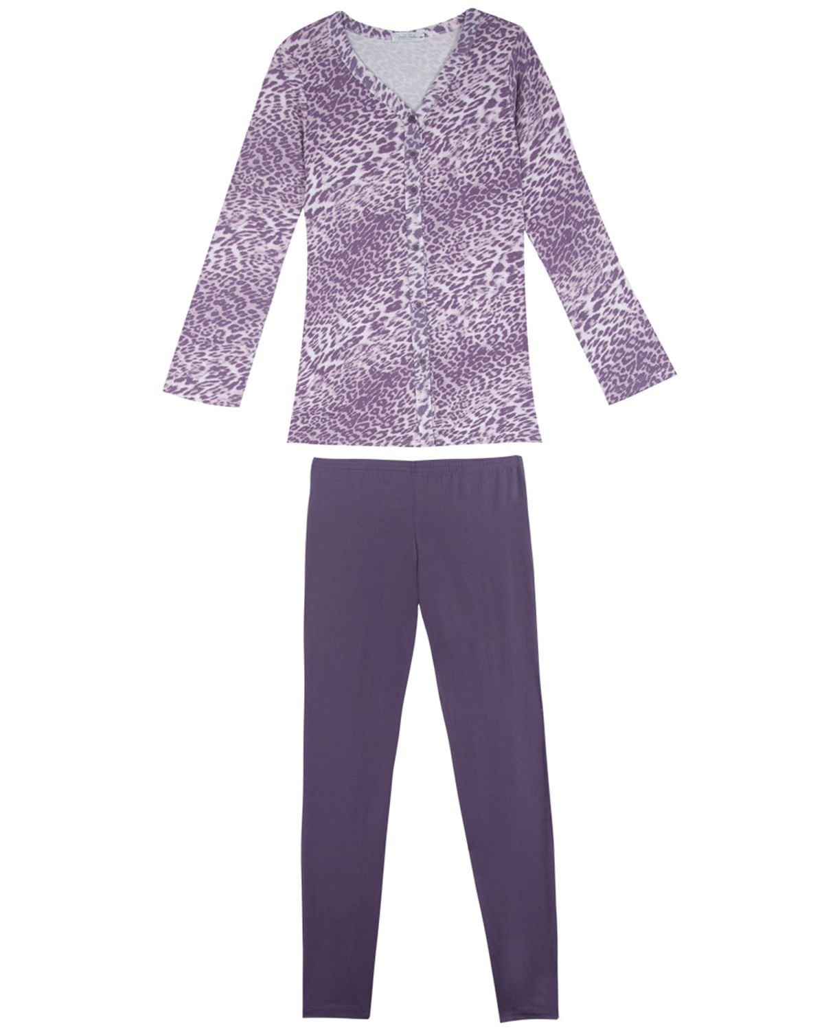 Na hora de dormir, vestir-se bem é fundamental. Para isso, o pijama legging é perfeito. Feito em viscose e com moderna e delicada estampa em animal print, é o pijama certo para encher suas noites de conforto e beleza. Destaque para abertura frontal com botões, ideal para atender as necessidades pós cirúrgica e amamentação.