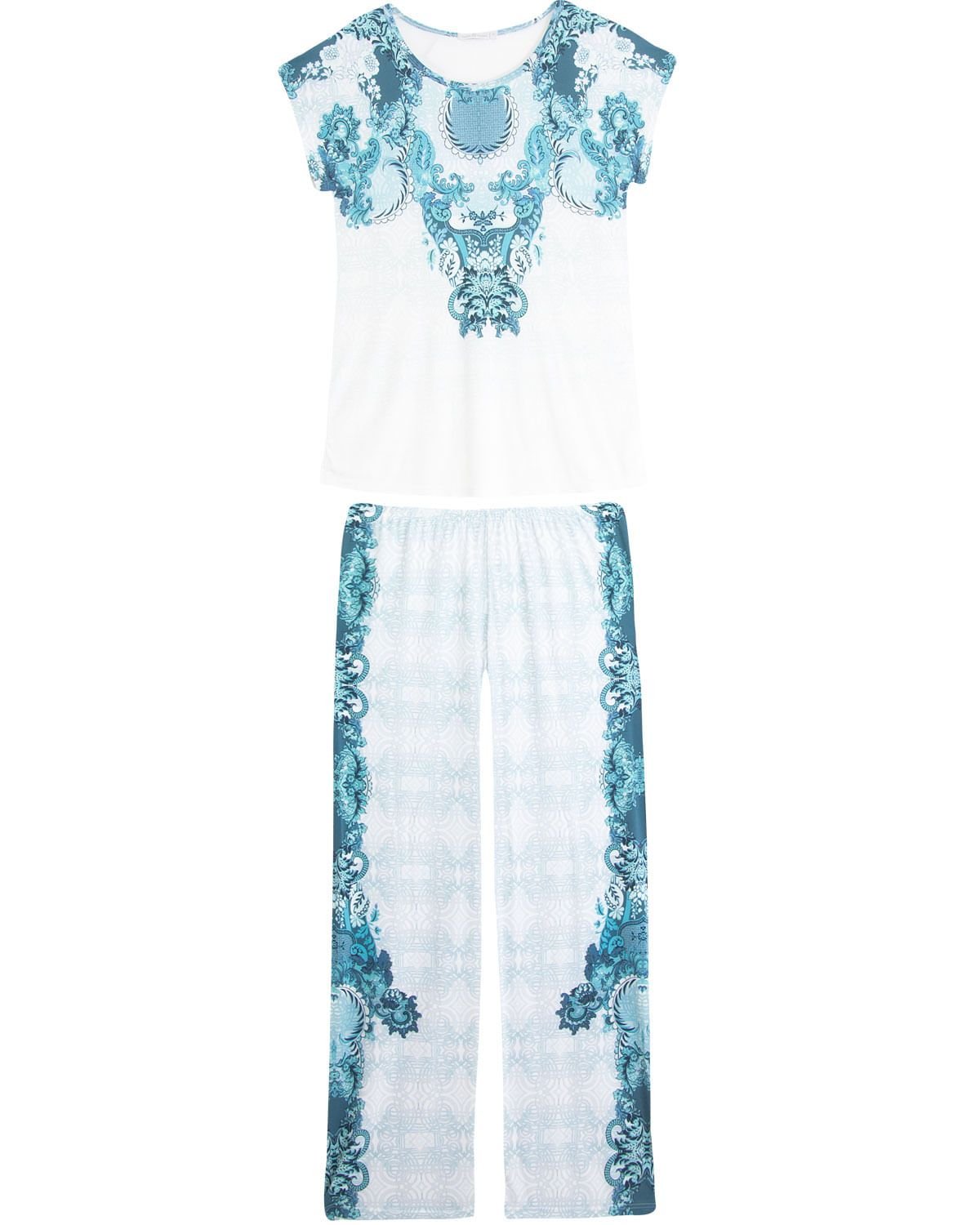 Com calça comprida e blusa manga curta em malha fria super leve e fresca, este pijama ganha toda a bossa com a estampa de porcelana estampando toda a peça. Perfeito e necessário para deixar seus momentos de relax ainda mais confortáveis e elegantes.