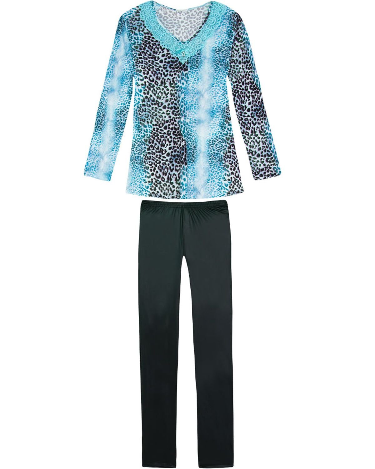 Este pijama é aquela peça perfeita para mulheres antenadas que gostam de estarem lindas e modernas até dentro de casa. Com blusa em animal print feita em viscose de excelente qualidade, acompanhada por calça leging em tecido macio que imita o couro, dando um visual cheio de personalidade.