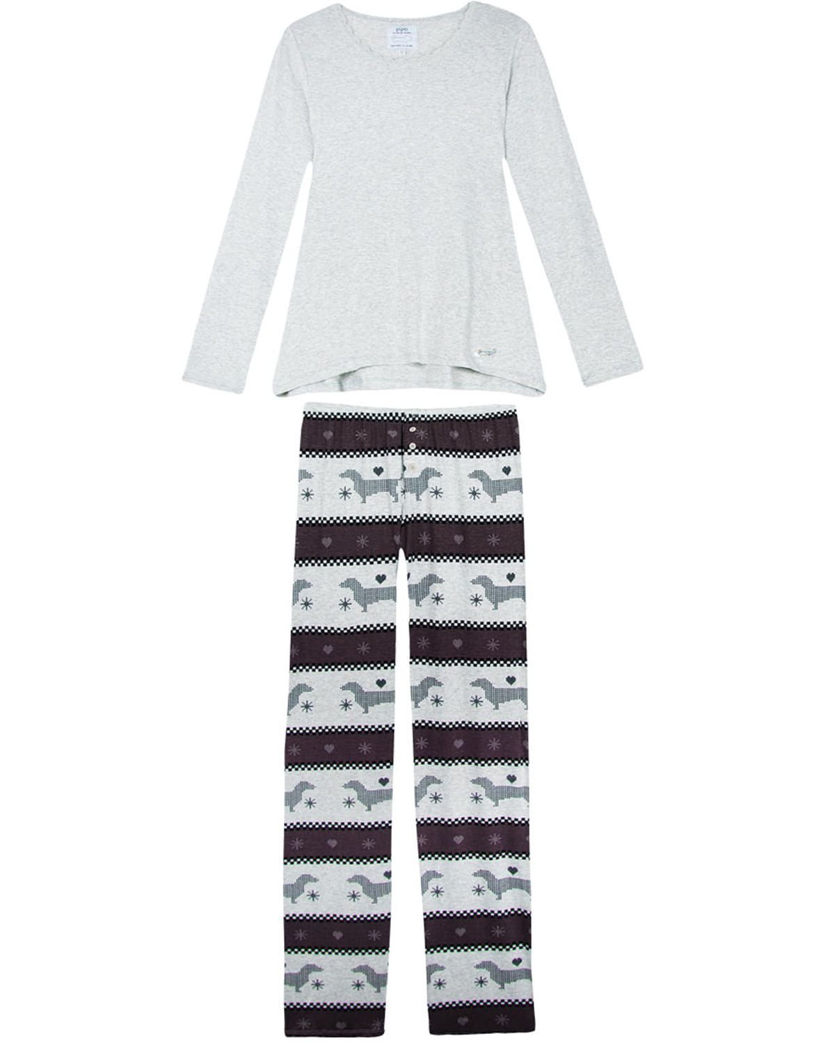 O pijama longo é aquele pijama para a mulher antenada que gosta de estar moderna até dentro de casa. Confeccionado em viscose de excelente qualidade, com blusa em modelagem evasê com manga longa, e calça em moderna estampa étnica. Destaque para detalhe em renda na gola da blusa.