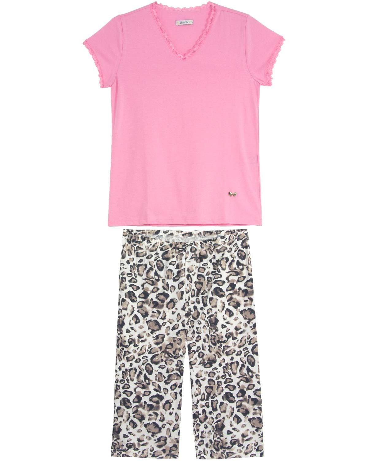 O pijama pescador é aquela peça básica, confortável e prática que toda mulher precisa ter em seu guarda-roupa. Esse modelo possui camiseta lisa com detalhes em renda e calça no mode pescador com estampa de oncinha, que segue a tendência do animal print, garantindo um visual moderno e feminino, perfeito para encantar e alegrar as noites. A malha 100% algodão é extremamente confortável e proporciona um caimento perfeito.