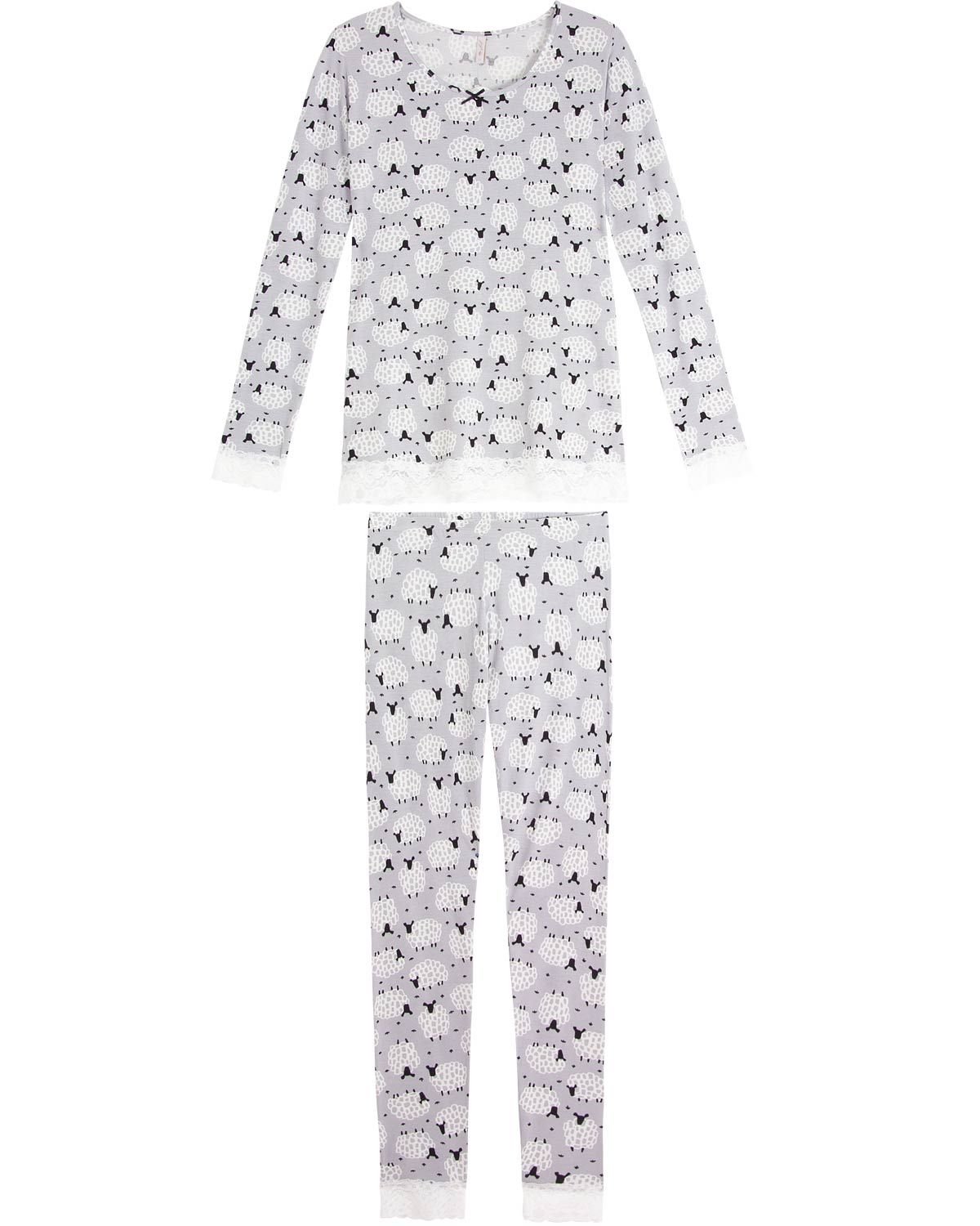 O pijama estampado é aquele item necessário para noites divertidas, alegres e momentos únicos ao lado da família. Esse modelo possui linda estampa de ovelhinhas por toda a sua extensäo e detalhes em renda na blusa e na calça legging, garantindo um visual feminino e encantador. O conforto é oferecido pela malha viscolycra de excelente qualidade, que proporciona um caimento leve e macio na pele. Perfeito para as noites de termperaturas mais amenas.