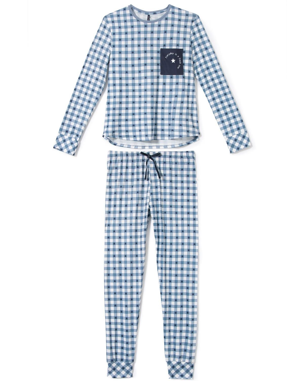 Sinta o toque na pele deste pijama em malha sublime touch com a textura extremamente suave e sedosa que transforma os seus momentos de descanso em uma experiência única.