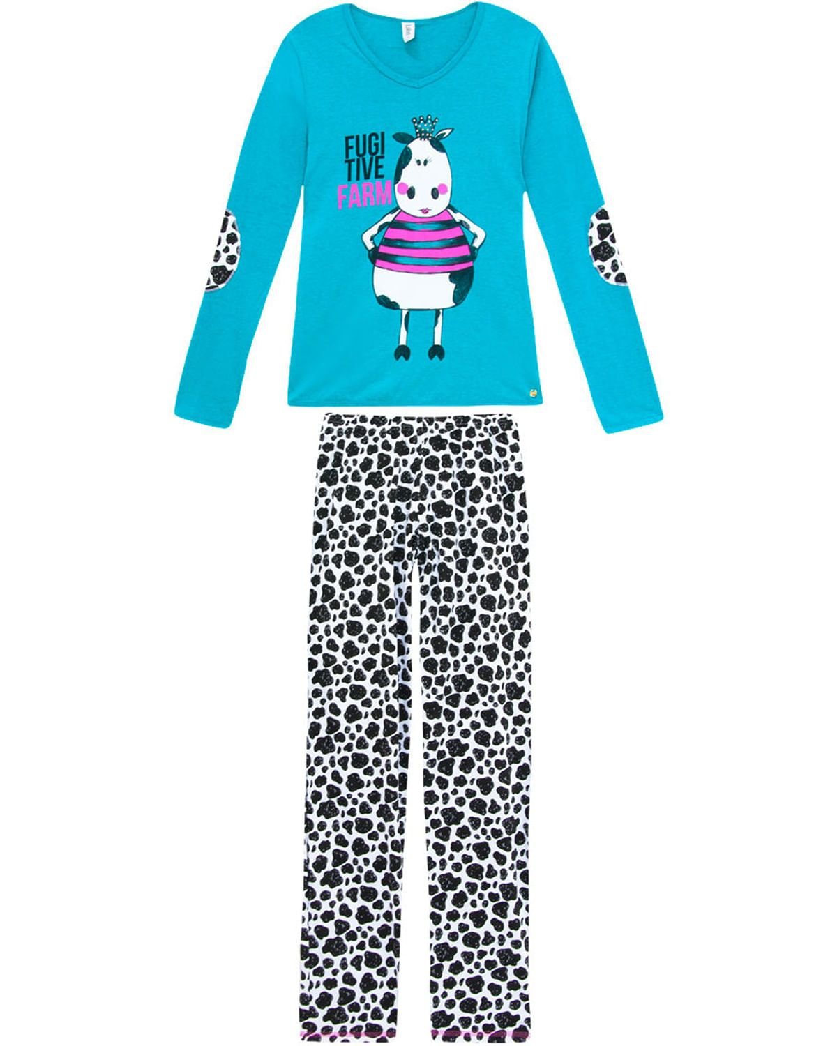 Este pijama é aquele item charmoso e necessário para estar a vontade até dentro de casa. Com calça em animal print, e camiseta manga longa com estampa super graciosa de vaquinha com aplicações de pequenas pedras. É o pijama ideal para deixar suas noites ainda mais alegres e confortáveis.