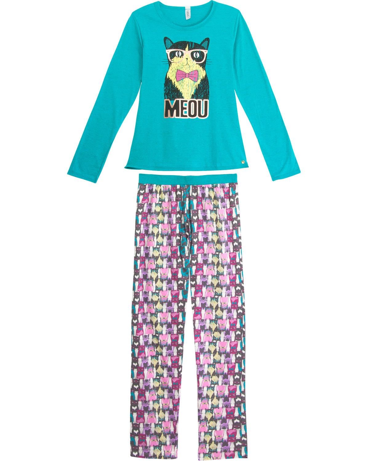 Este pijama é aquele item charmoso e necessário para estar a vontade até dentro de casa. Com calça colorida toda estampada de gatinhos, e camiseta manga longa com estampa super graciosa. É o pijama ideal para deixar suas noites ainda mais alegres e confortáveis.