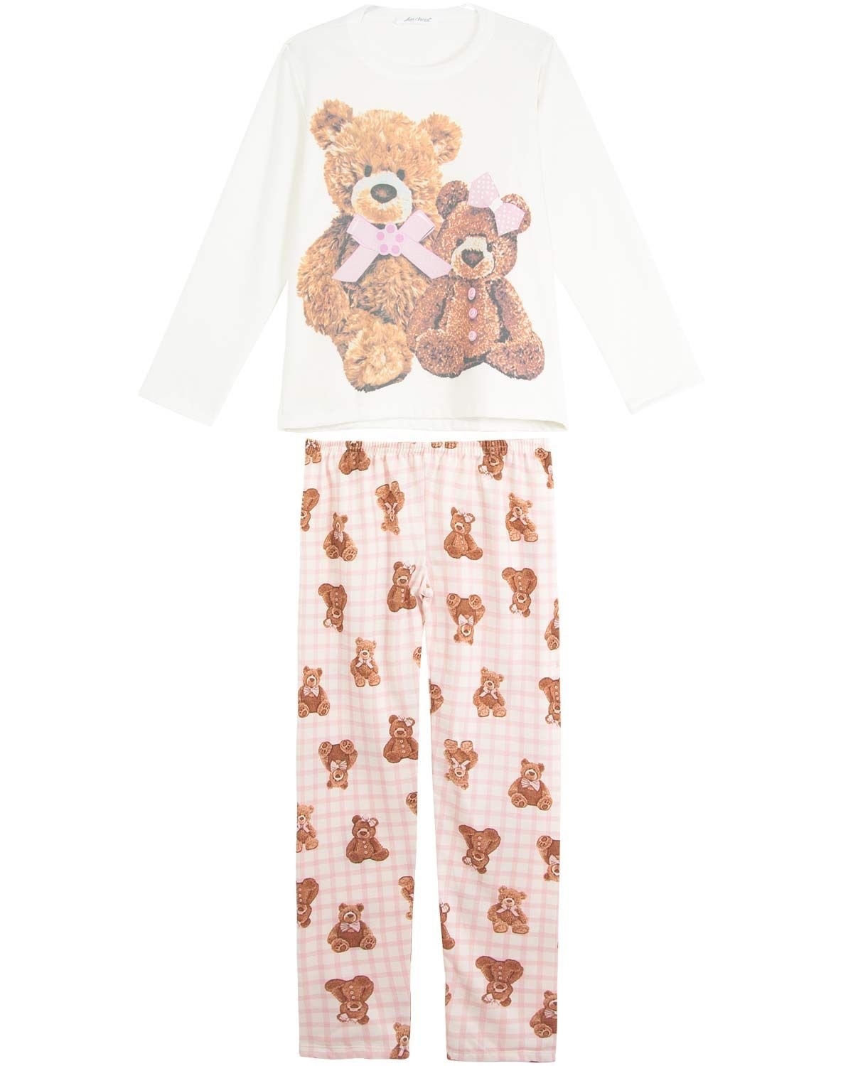 Para alegrar e enfeitar os momentos únicos de descanso, nada melhor que um pijama aconchegante e fofo, como este em moletinho flanelado com graciosa estampa de ursos na blusa manga longa, acompanhada de calça xadrez toda estampada com pequenos ursos. Modelo disponével no infantil, proporcionando um visual "tal mãe tal filha".