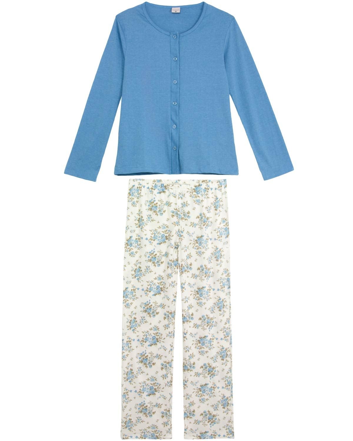 Para se sentir confortável preservando a beleza e a delicadeza, esse pijama é mais que perfeito! Esse modelo com mangas longas com abertura frontal, é bem prático. Confeccionado em algodão e poliéster, oferece um caimento perfeito no corpo. É leve, macio e ideial para noites mais amenas.