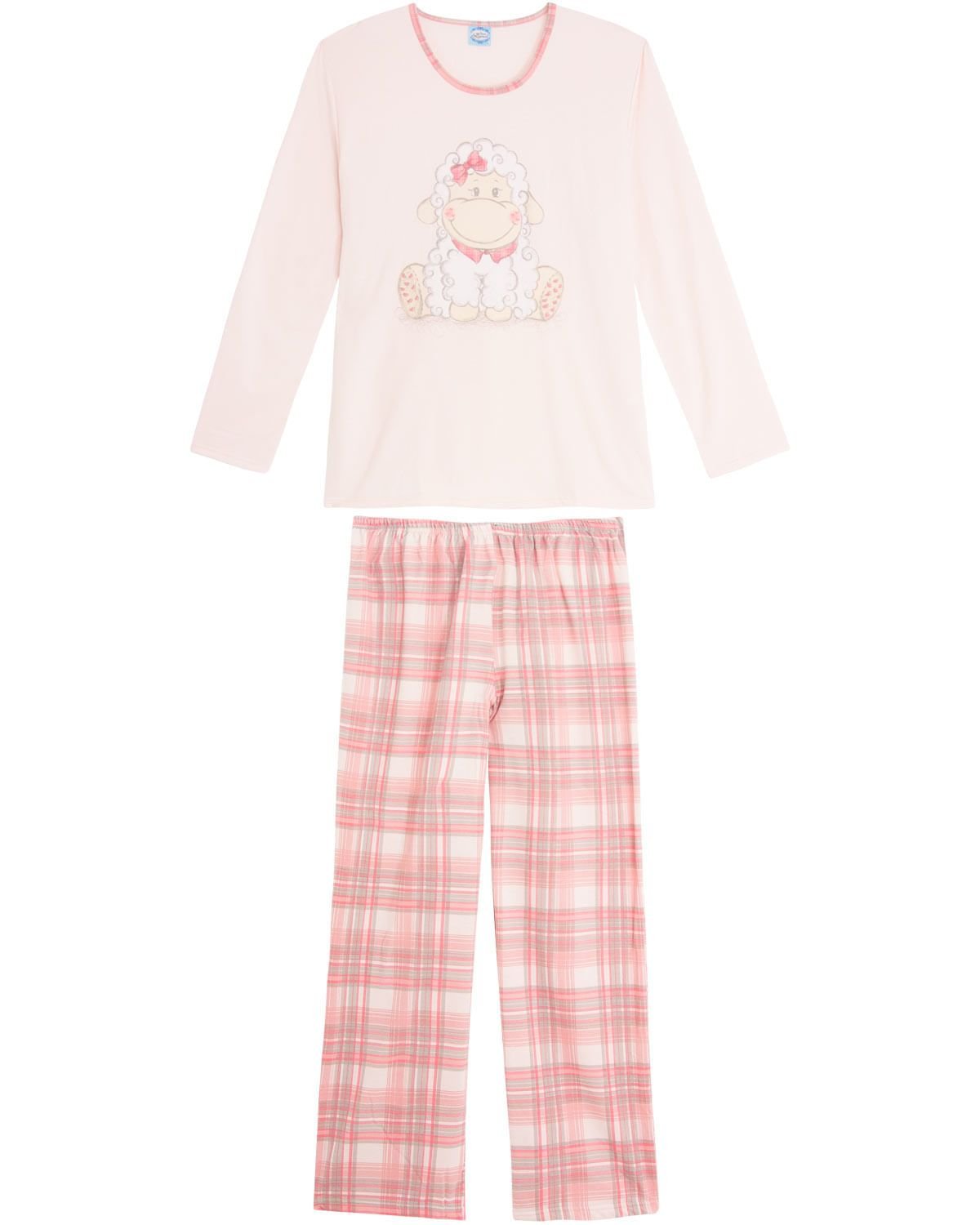 O conforto e o aconchego também deve estar presente na hora de dormir. Para isso, o pijama é confeccionado em macio moletinho flanelado, com calça xadrez e blusa de manga longa com graciosa estampa da Ovelha e viés xadrez. É a peça é ideal para noites com temperaturas mais frias.