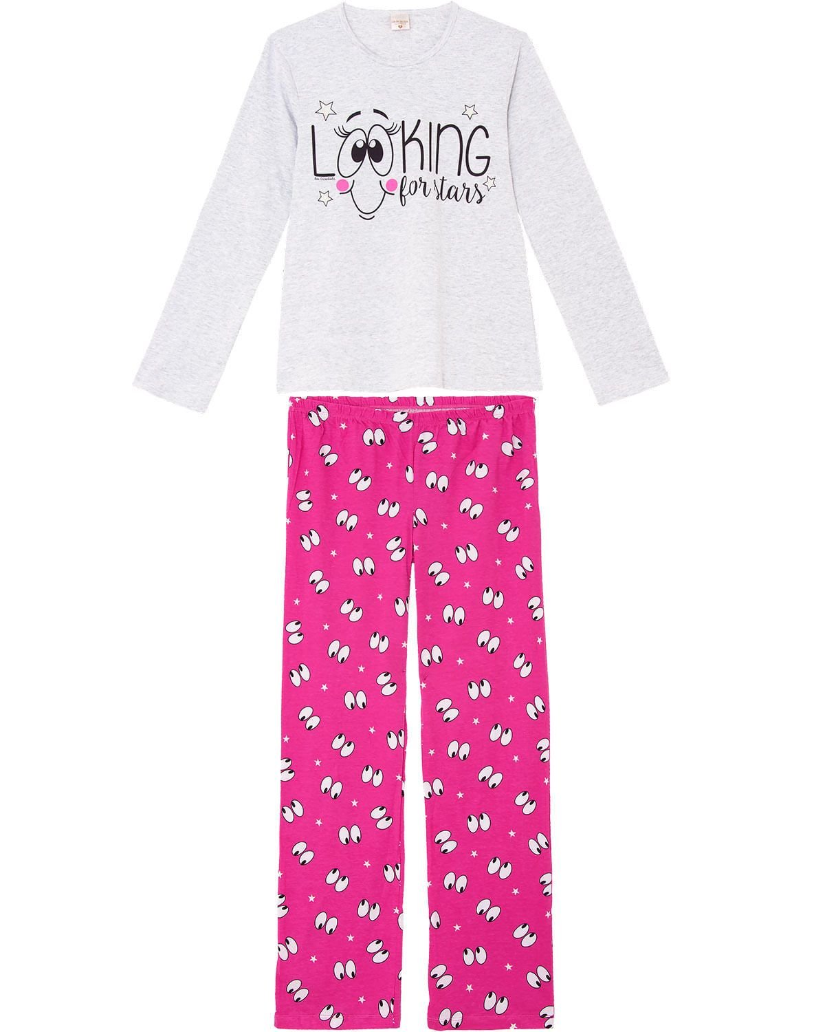 Um pijama que não pode faltar nas sessões de pipoca e no aconchego de sua casa. Além das cores que se destacam agregando um estilo divertido e estiloso para a peça, a estampa da blusa brilha no escuro! E para completar este pijama incrível, a calça é toda estampada em rosa, o cós é de elástico e agrega conforto, leveza e sofisticação.