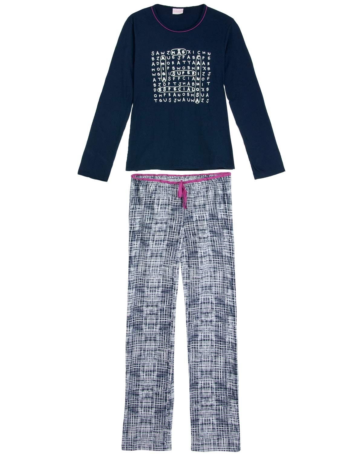 Os pijamas mãe e filha sempre são uma ótima opção para quem deseja passar momentos únicos em família no aconchego do lar. As crianças adoram quando estão vestidas iguais as mamães, e estas adoram ver seus pequenos se divertindo. Esse modelo possui blusa com estampa divertida e calça estampada com elástico rosa, super feminino e diferente. A malha é 100% algodão, priorizando assim o conforto com um toque leve e macio na pele.