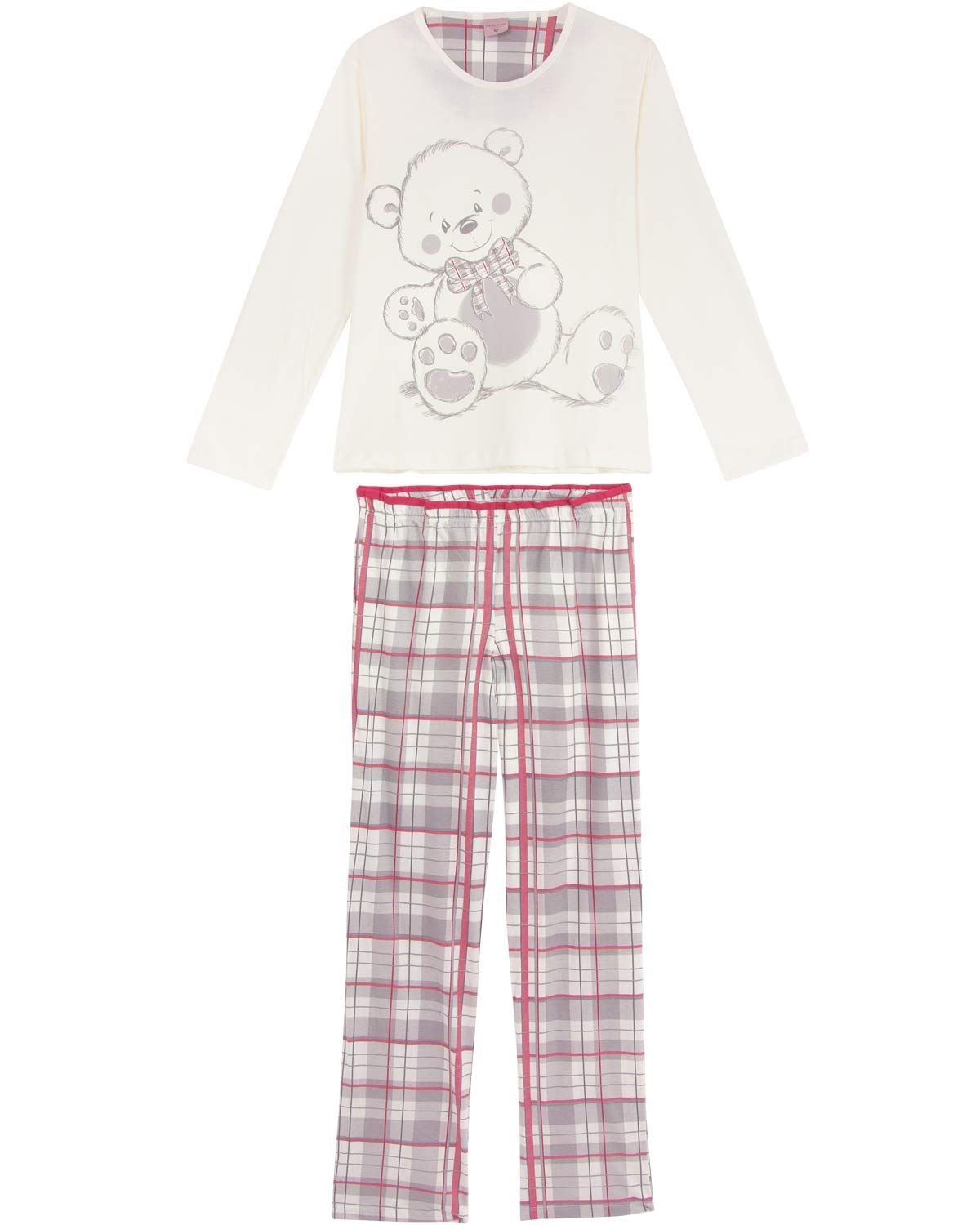 Uma noite tranquila, cheia de sonhos incríveis, é o que precisamos ao chegar em casa depois de um longo dia, e para isso, um pijama aconchegante é essencial. Esse modelo possui camiseta de manga longa com estampa fofa de ursinho e calça xadrez, compondo um visual diferente e moderno. A malha é confeccionada em algodão, um tecido leve que garante o conforto e a maciez durante a noite inteira. Perfeito para noites de temperaturas mais amenas.