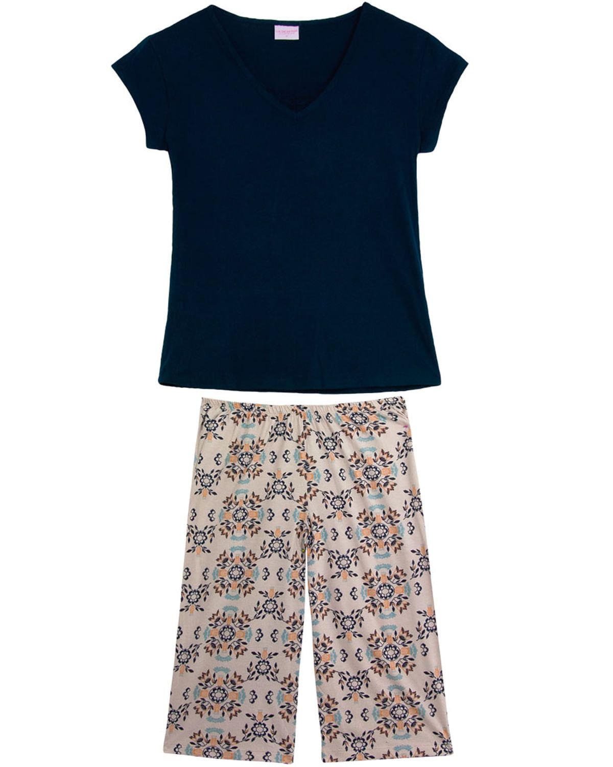 O Pijama Pescador é aquela peça necessária, com calça em comprimento médio deixa qualquer mulher a vontade para dormir em qualquer ambiente com tranquilidade, conforto e modernidade. Confeccionado em 100% algodão, com a calça com moderna estampa floral e blusa meia manga lisa, com discreto acabamento em renda no decote, dando o toque feminino a peça. Ideal para encher de beleza as noites de temperaturas mais amenas.