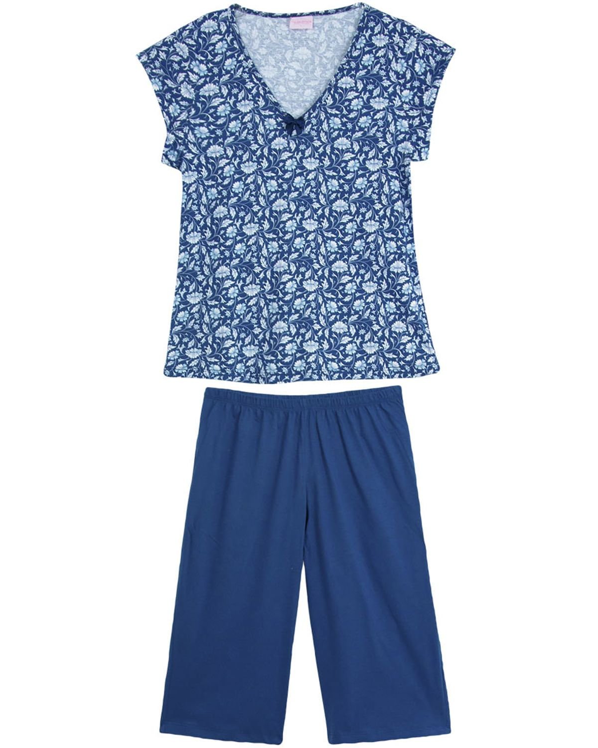 O Pijama Pescador é aquela peça necessária, com calça em comprimento médio deixa qualquer mulher a vontade para dormir em qualquer ambiente com tranquilidade, beleza e modernidade. Confeccionado em 100% algodão, com calça lisa e blusa manga curta com estampa floral, dando o toque feminino a peça. Ideal para encher de conforto as noites de temperaturas mais amenas.