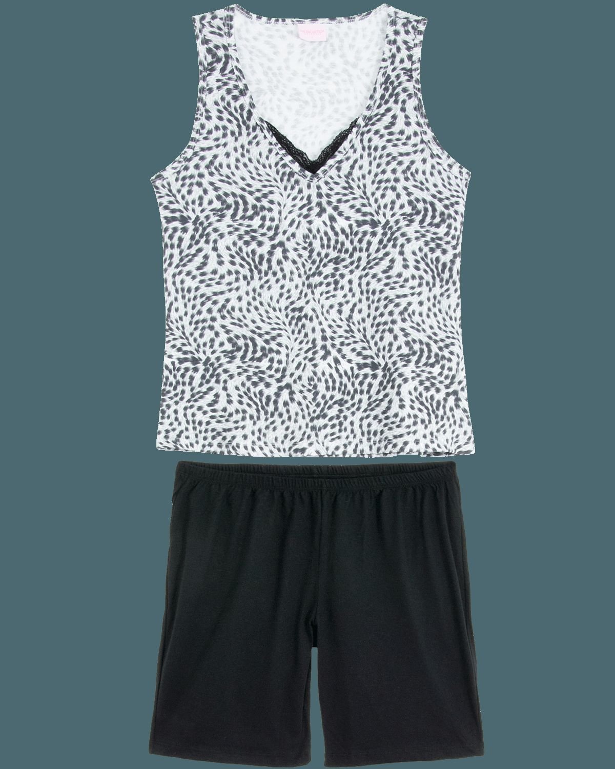 O pijama ideal é aquele que além de confortável, é elegante e bonito. Esse modelo possui estampa jovial de oncinha e short liso, perfeito para as mulheres modernas e despojadas. O conforto e aconchego fica por conta da malha 100% algodão que garante a maciez e leveza na pele, durante todas as noites de verão.