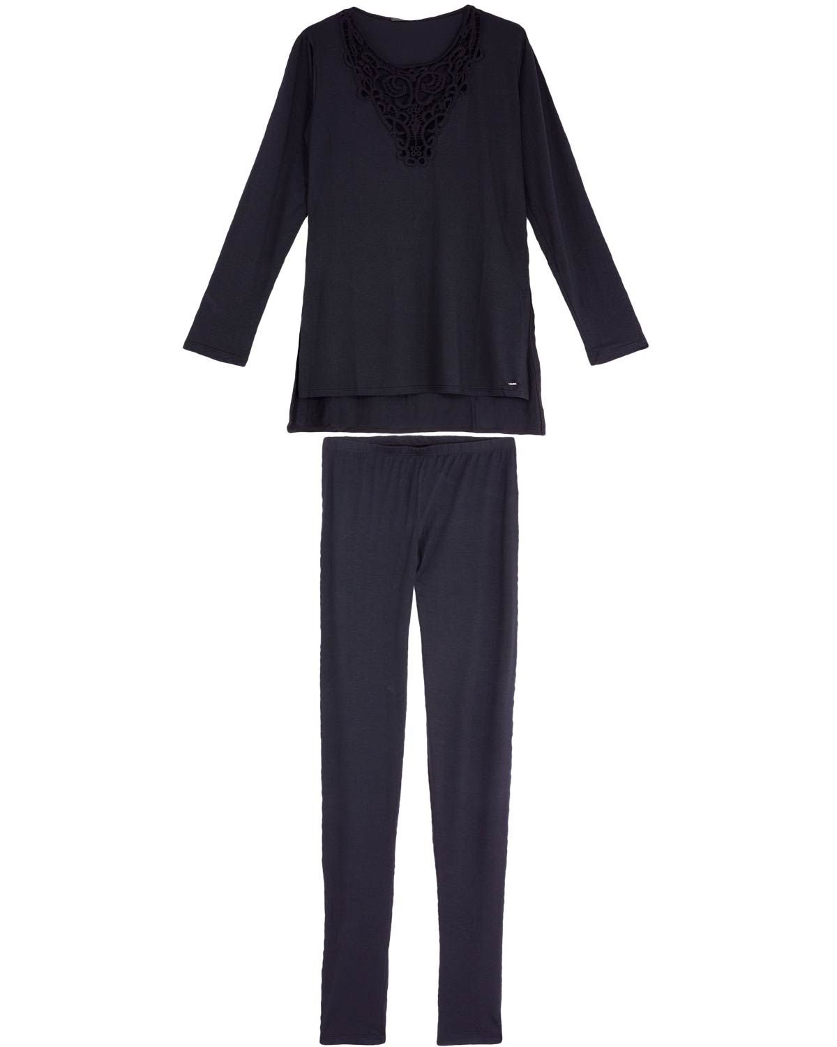 Todo confeccionado em modal de primeira qualidade, este pijama é um clássico repaginado. Com calça comprida ajusatada ao corpo e blusa solta estilo mullet, com acabamento impecável no decote, o que deixará suas noites mais confortáveis e cheia de bossa.