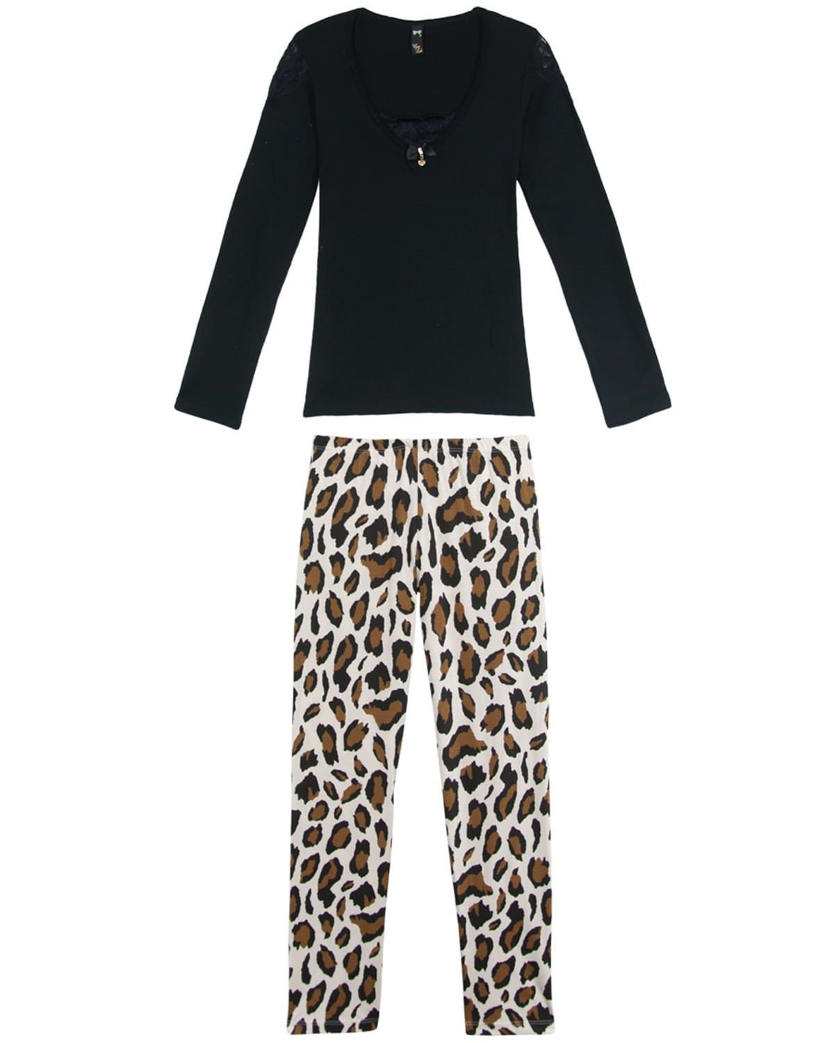 O pijama uni o conforto da malha, a modernidade da estampa de oncinha e o romantismo da renda em uma única peça, trazendo beleza e priorizando o conforto para suas noites. Sofisticado, delicado e moderno na medida.