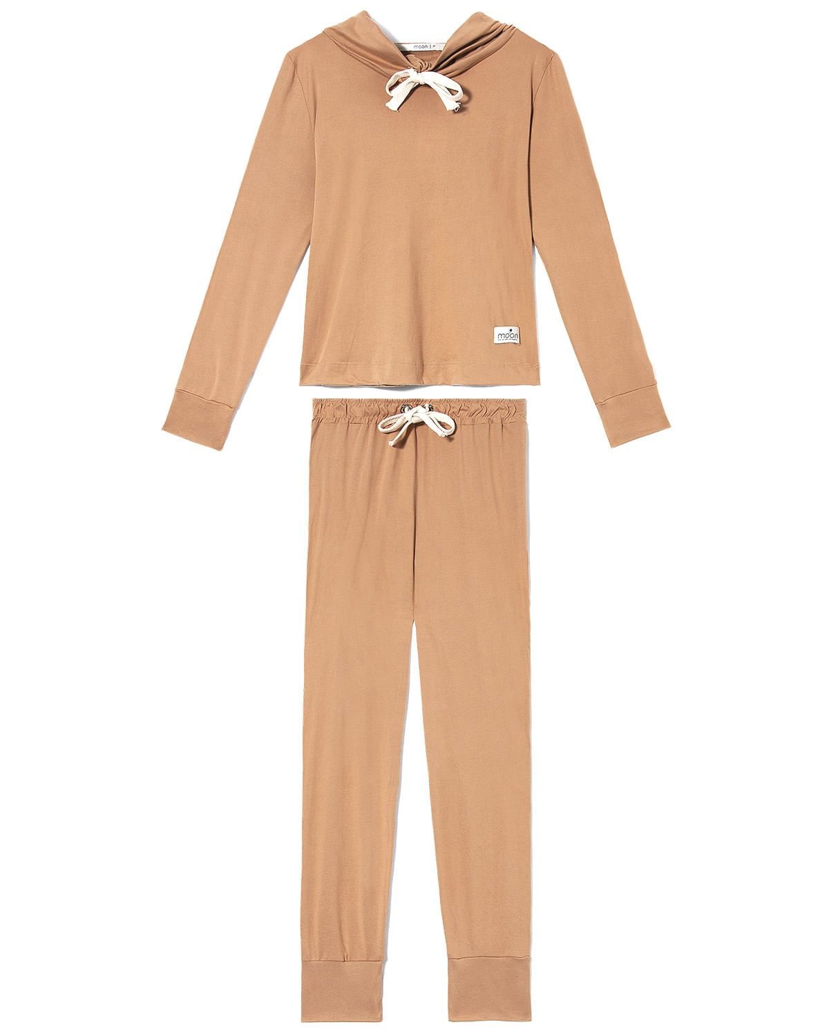 Com a linha loungewear é possível estar confortável e estilosa a qualquer hora do dia. Este modelo que é composto por blusa de mangas longas e amarração decorativa na gola super moderna, conta com calça com punhos e falsa amarração em gorgurão no cós de elástico. Além de moderno, o conjunto que é confeccionado em modal, garante ótimo caimento, toque macio e aconchegante, seja para os momentos de descanso ou para o lazer.