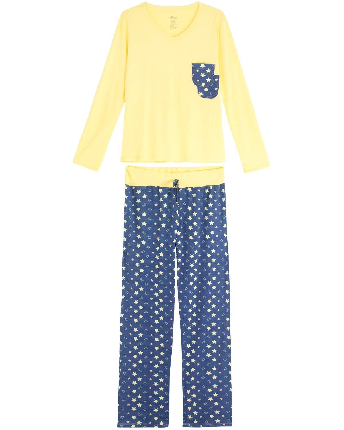 Para a mulher moderna e que não abre mão do conforto e estilo até nos momentos de descanso, esse pijama é a peça ideal. Todo confeccioando em viscolycra da melhor qualidade, proporciona um toque leve e delicioso na pele. Com modelagem tradicional e estampa alegre de estrelas, esse pijama uni o conforto necessário e a peronalidade desejada para seus momentos de relax.