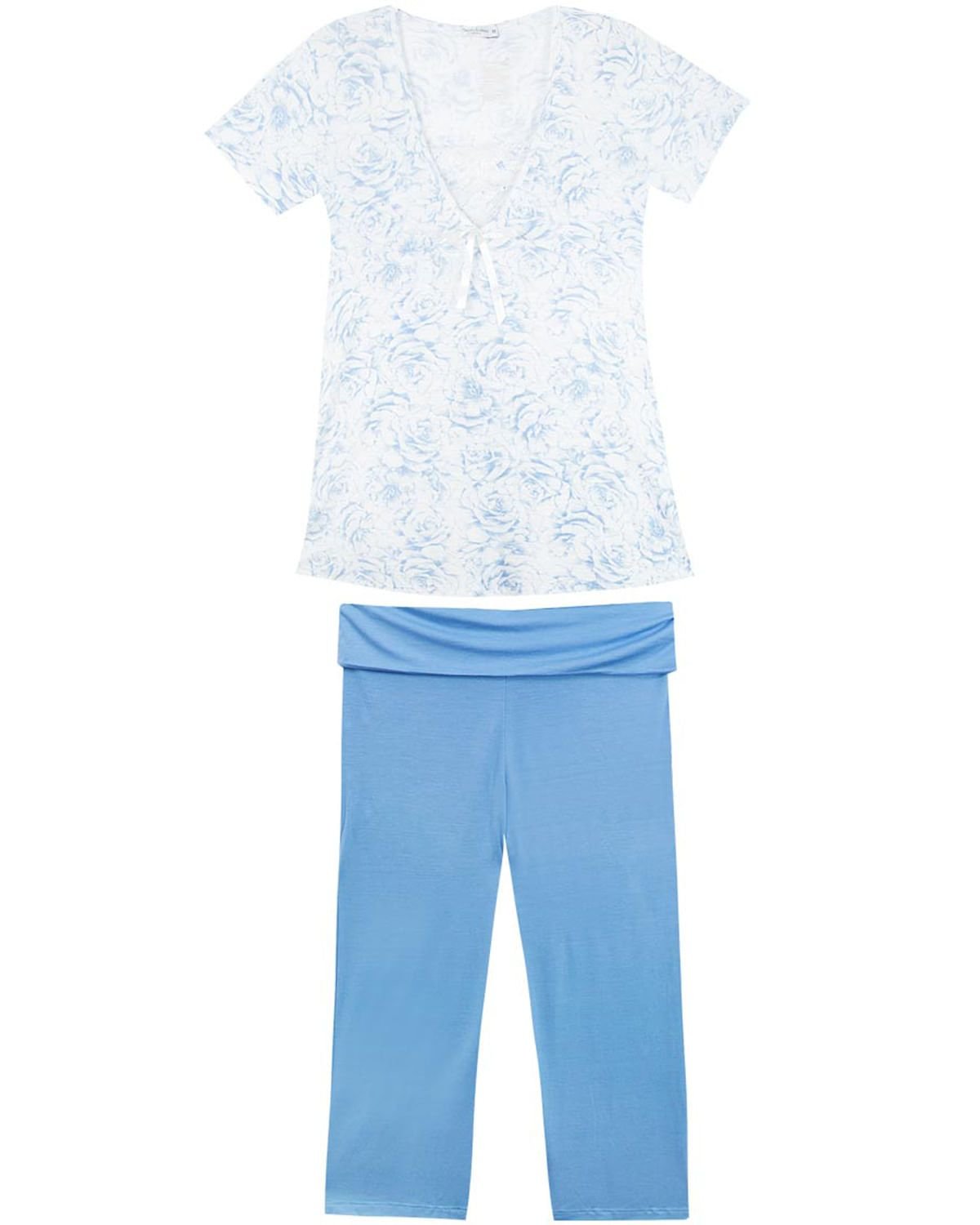 Este pijama foi pensado especialmente para as futuras mamães. Ele tem uma inovadora e prática modelagem, trazendo conforto e praticidade para o momento da amamentação. Com bermuda lisa com cós largo e macio e botões frontais na blusa com estampa floral. Um visual lindo e fluído para o momento mais especial da vida da mulher.