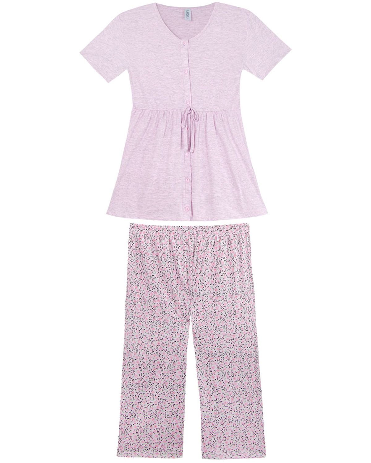 Este pijama é aquela peça graciosa, com uma modelagem prática e moderna, trazendo conforto e beleza para suas primeiras noites como mamãe. Feito em malha extremamente macia com calça estilo pescador com estampa floral, e blusa estilo bata com botões frontais, perfeito para atender as necessidades de pós cirurgia e amamentação.