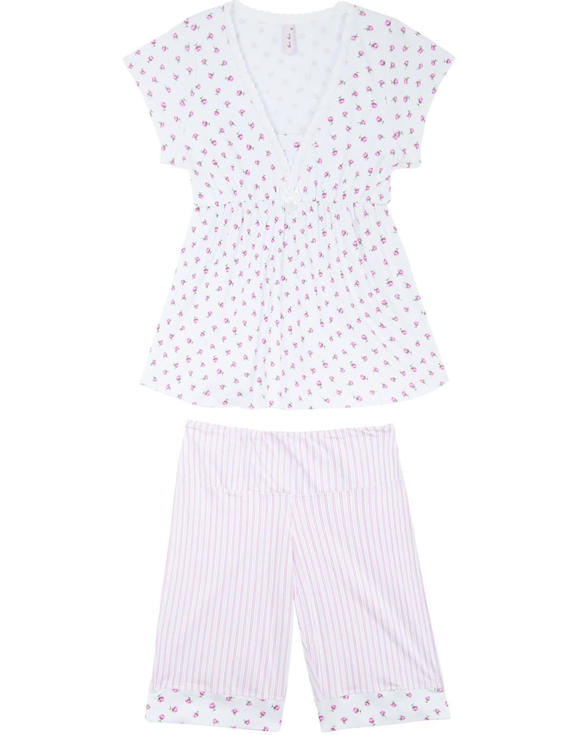 O pijama é aquela peça graciosa, com uma modelagem prática e moderna, trazendo conforto e beleza para suas primeiras noites de mamãe. Feito em malha, com elástico macio no busto e com botões frontais, é uma excelente opção para atender as necessidades de pós cirurgia e amamentação. Destaque para renda e lacinho de cetim no busto.