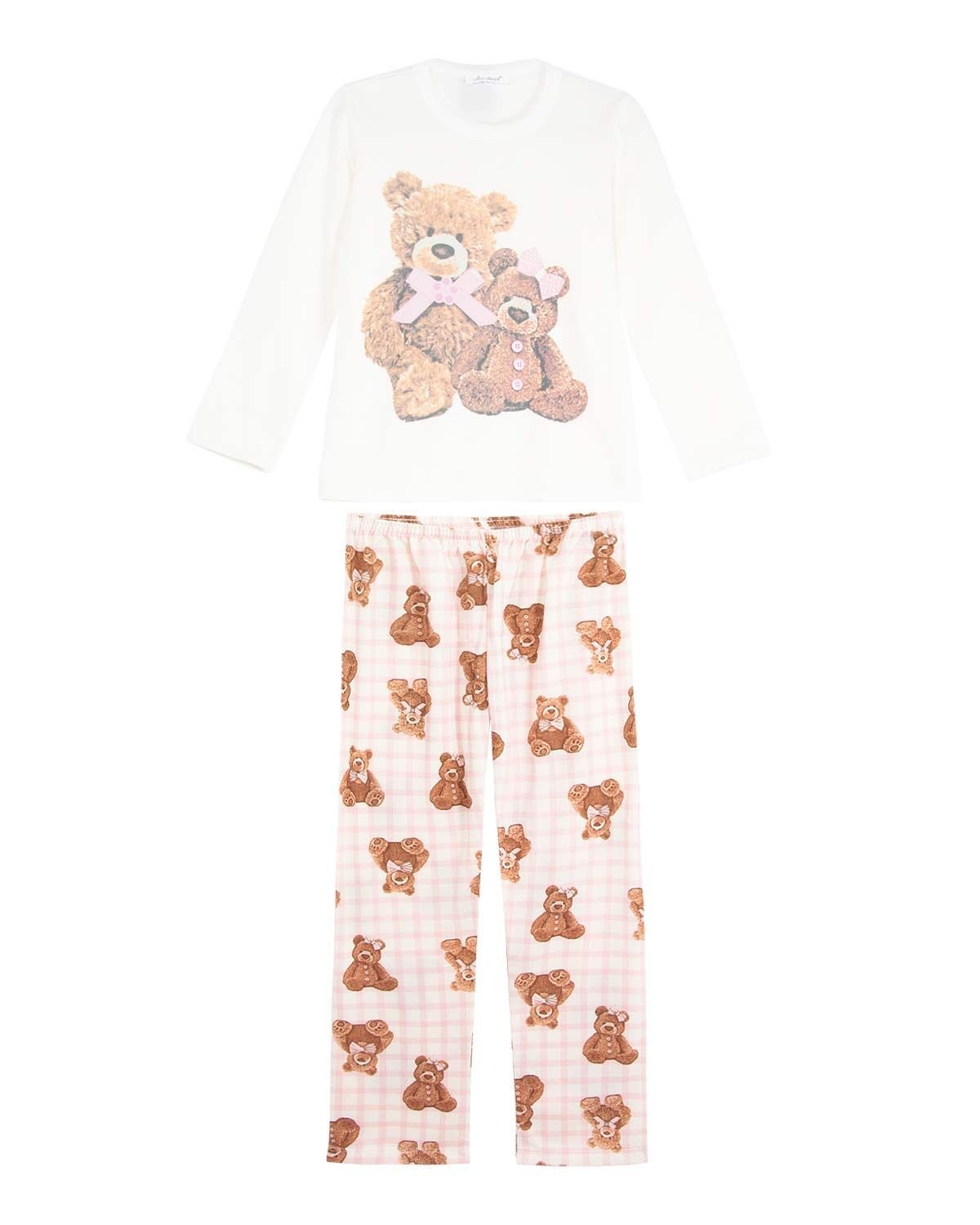 Os pijamas mãe e filha sempre são uma ótima opção para quem deseja passar momentos únicos em família no aconchego do lar. As crianças adoram quando estão vestidas igual as mamães, e as mamães adoram ver seus pequenos se divertindo. Esse modelo de pijama todo em moletinho flanelado é composto por blusa com estampa feminina e graciosa de ursinho, acompanhada de calça comprida xadrez com ursos estampados. Disponível no tamanho adulto, proporcionando um visual "tal mãe, tal filha".