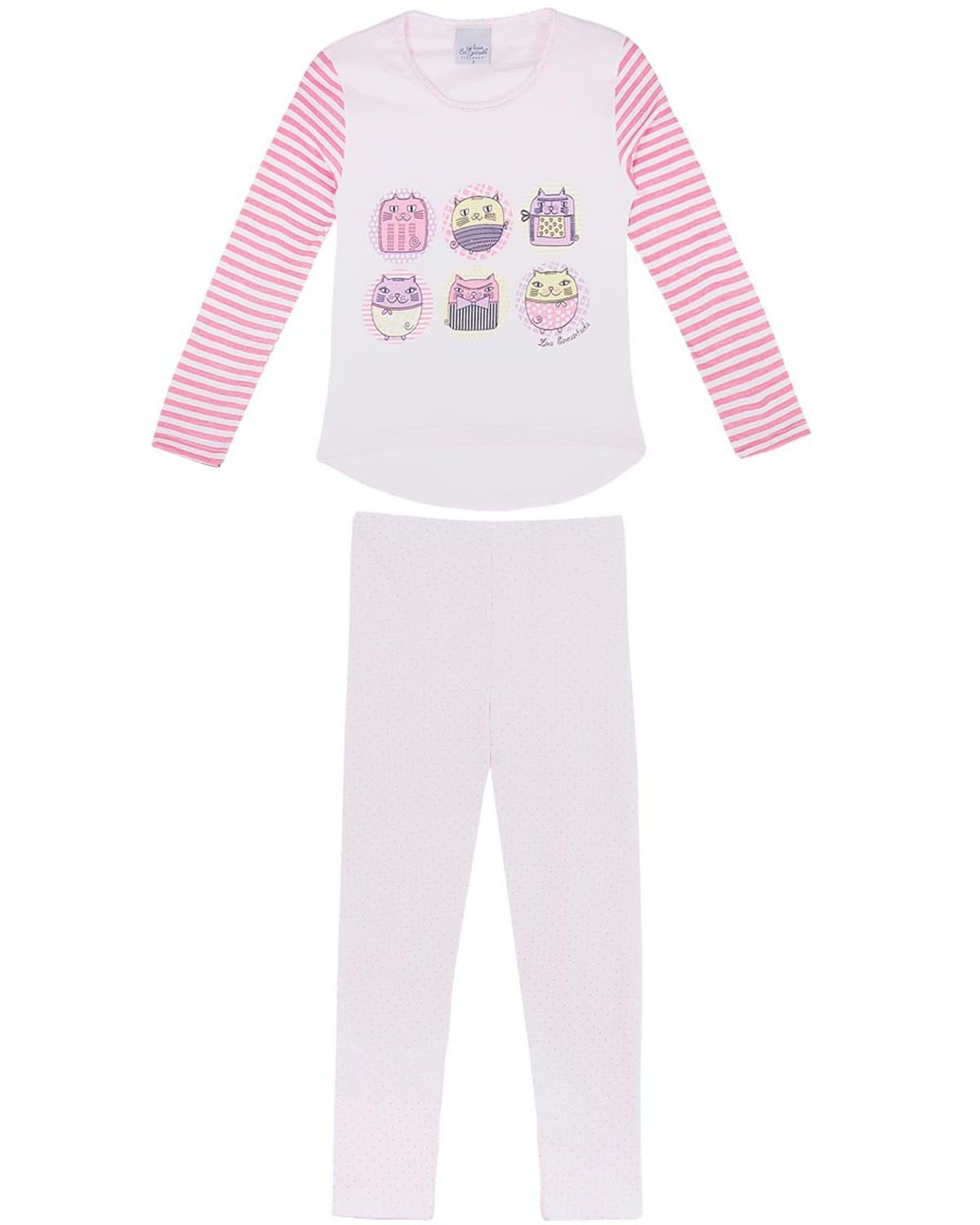 A hora de dormir é um momento único em família e precisa ser divertido, colorido & muito acolhedor. Para isso, pijamas lúdicos em modelos que respeitam a infância, como este pijama com estampa graciosa de gatinhos e calça estilo legging de bolinhas, todo em malha extremamente macia, garantindo o conforto e a mobilidade durante a noite toda.
